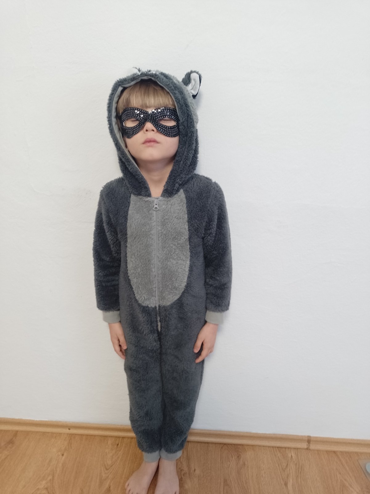 Veľkosť 5-6 rokov, 2 diely, spolu aj s maskou. Dlžka 67cm
