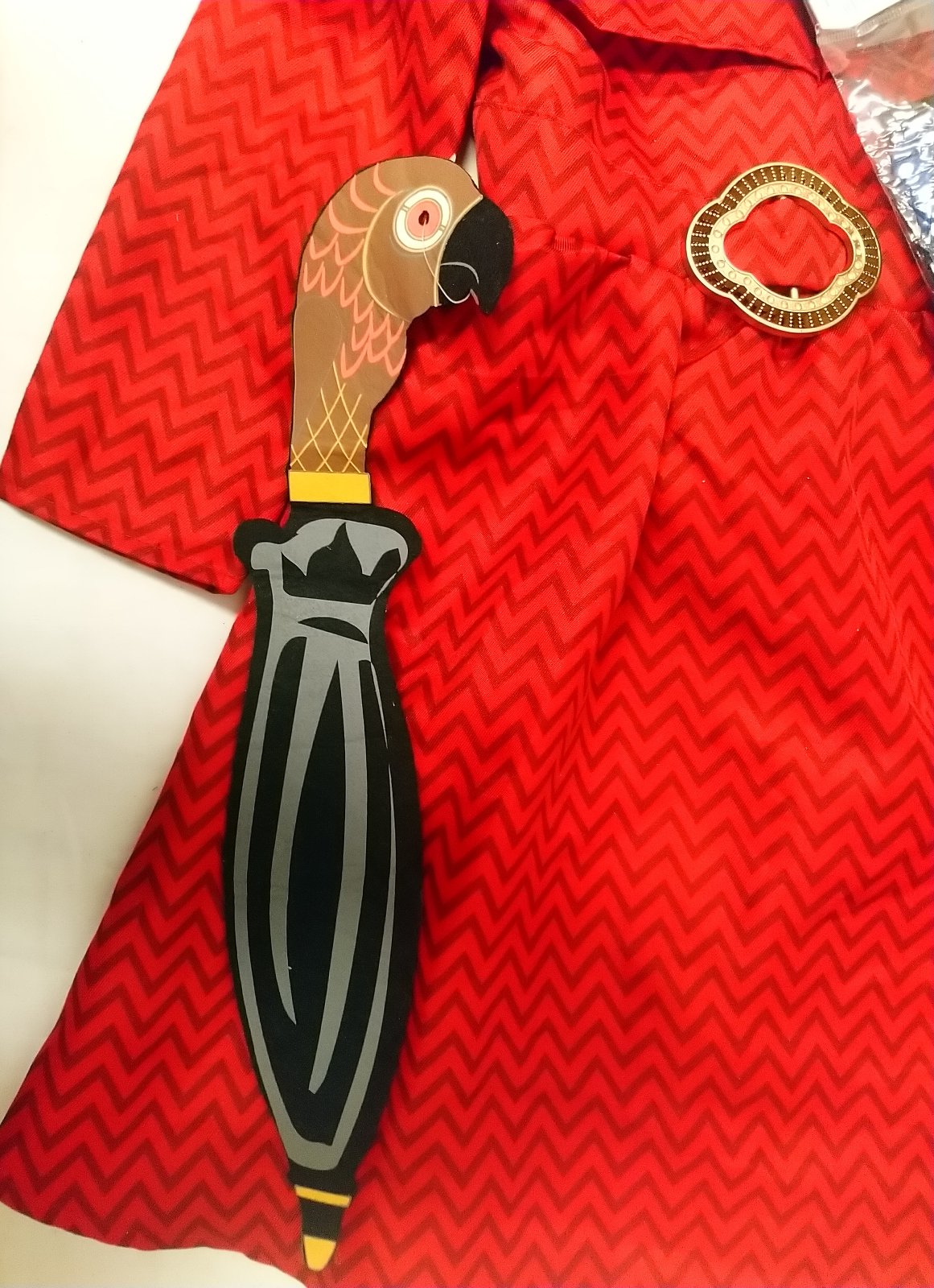 1. červené šaty s brošňou a sponou na opasok, v páse vzadu gumička, zapínanie vzadu na suchý zips,