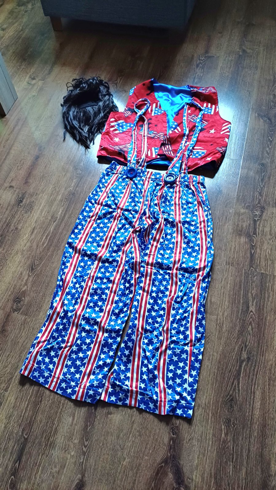 Predám kostym, nohavice+ vesta +parochňa. V dobrom stave, veľkosť tipujem L.