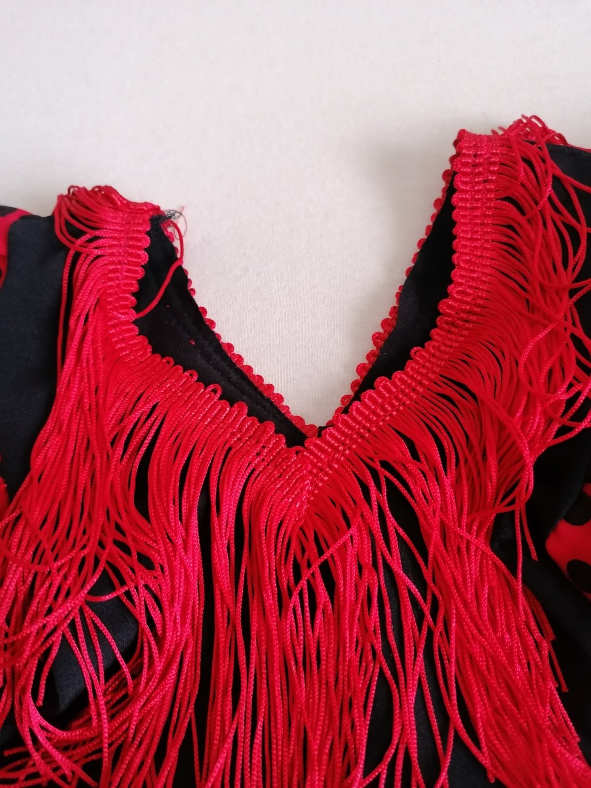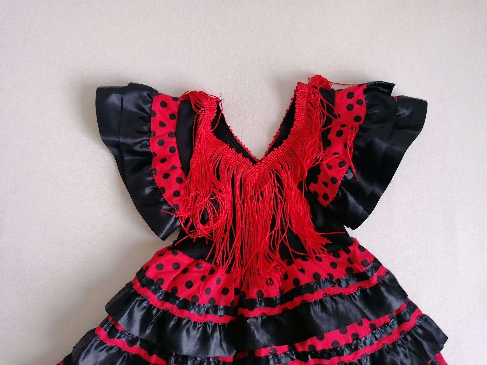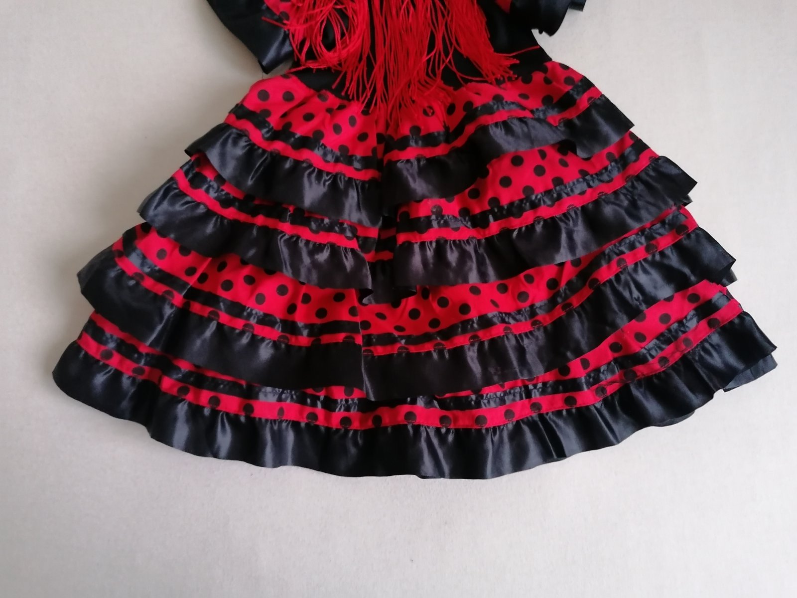 Top stav, bez poškodení, ako nové. Ako ozajstné šaty tanečnice, krásne prepracované. Drieková časť elastická, suknička a volániky pevná látka lemované lesklým saténom.