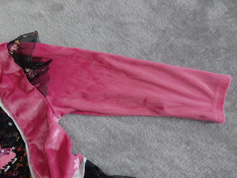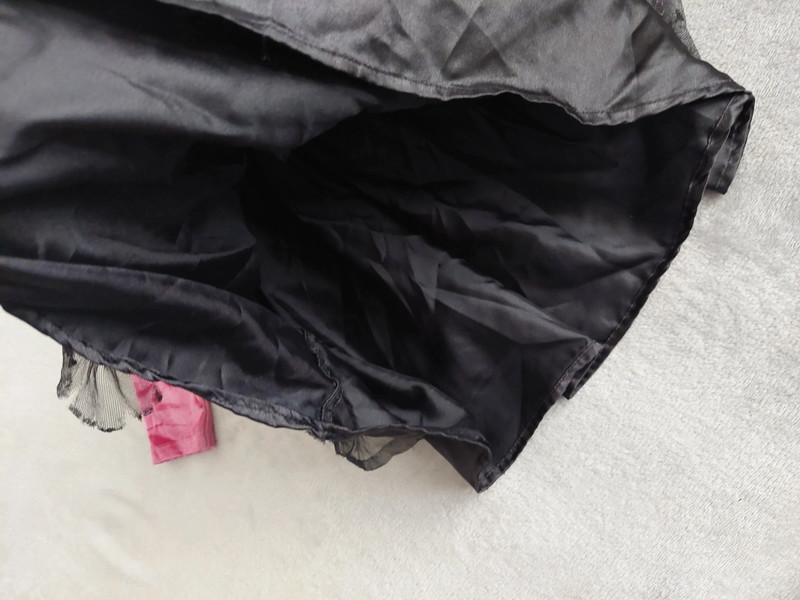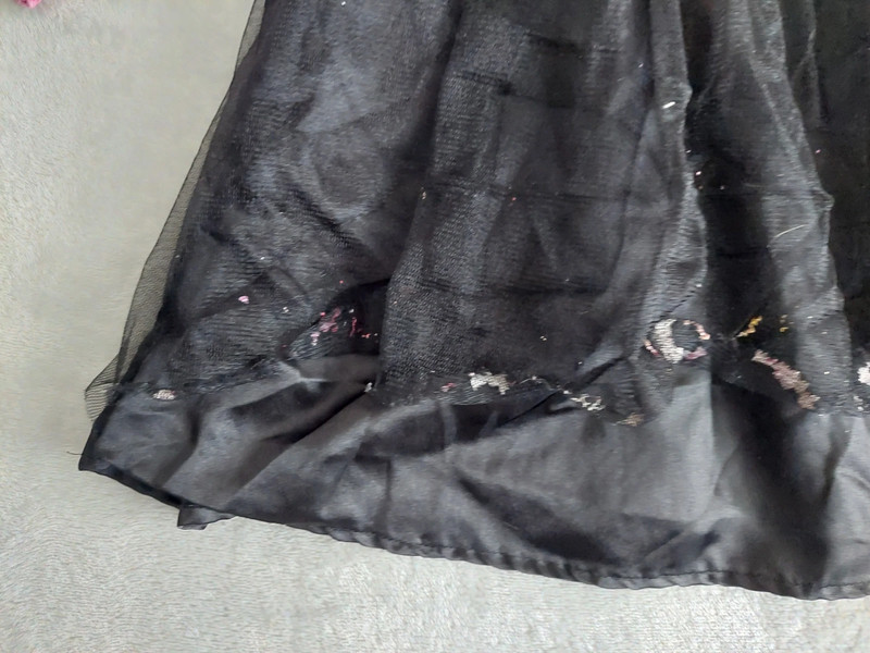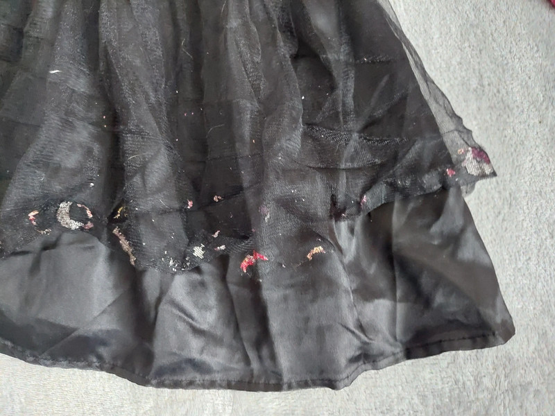 Stav: pekný nosený stav - olúpaná aplikácia na tylovej sukničke + horná aplikácia na živôtiku sa začína odlupovať tiež. Inak krásne šaty, živôtik zamatový, v páse guma.