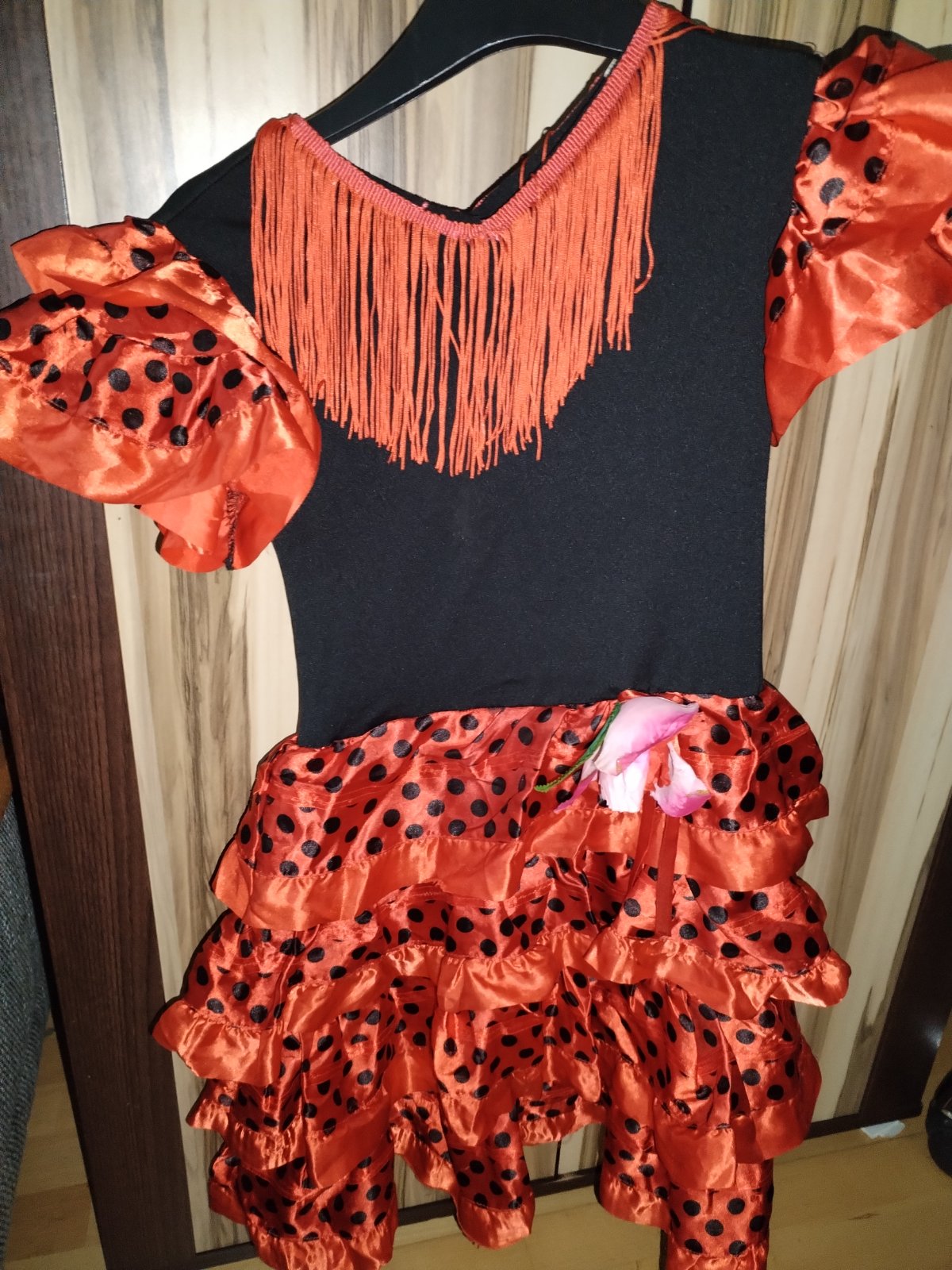 Veľkostne 110-122. Šaty+ čelenka Na niektorých miestach sa okraje sukne páraju, cena tomu prispôsobena.