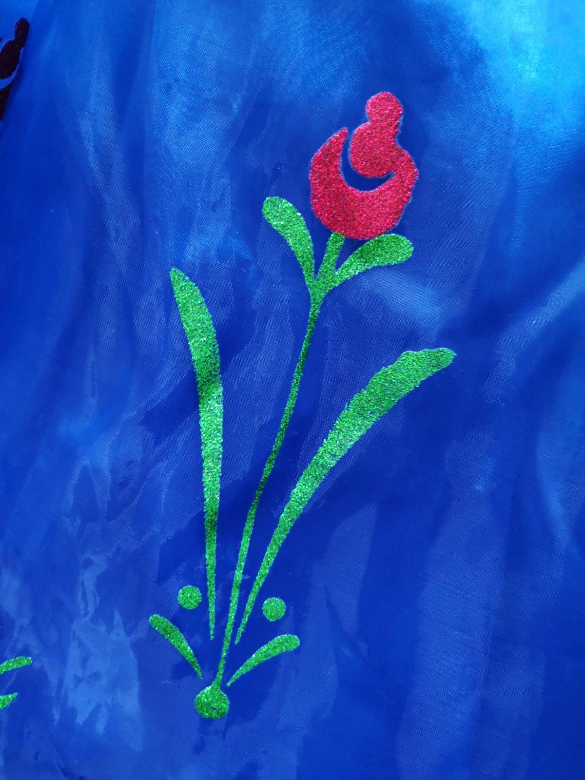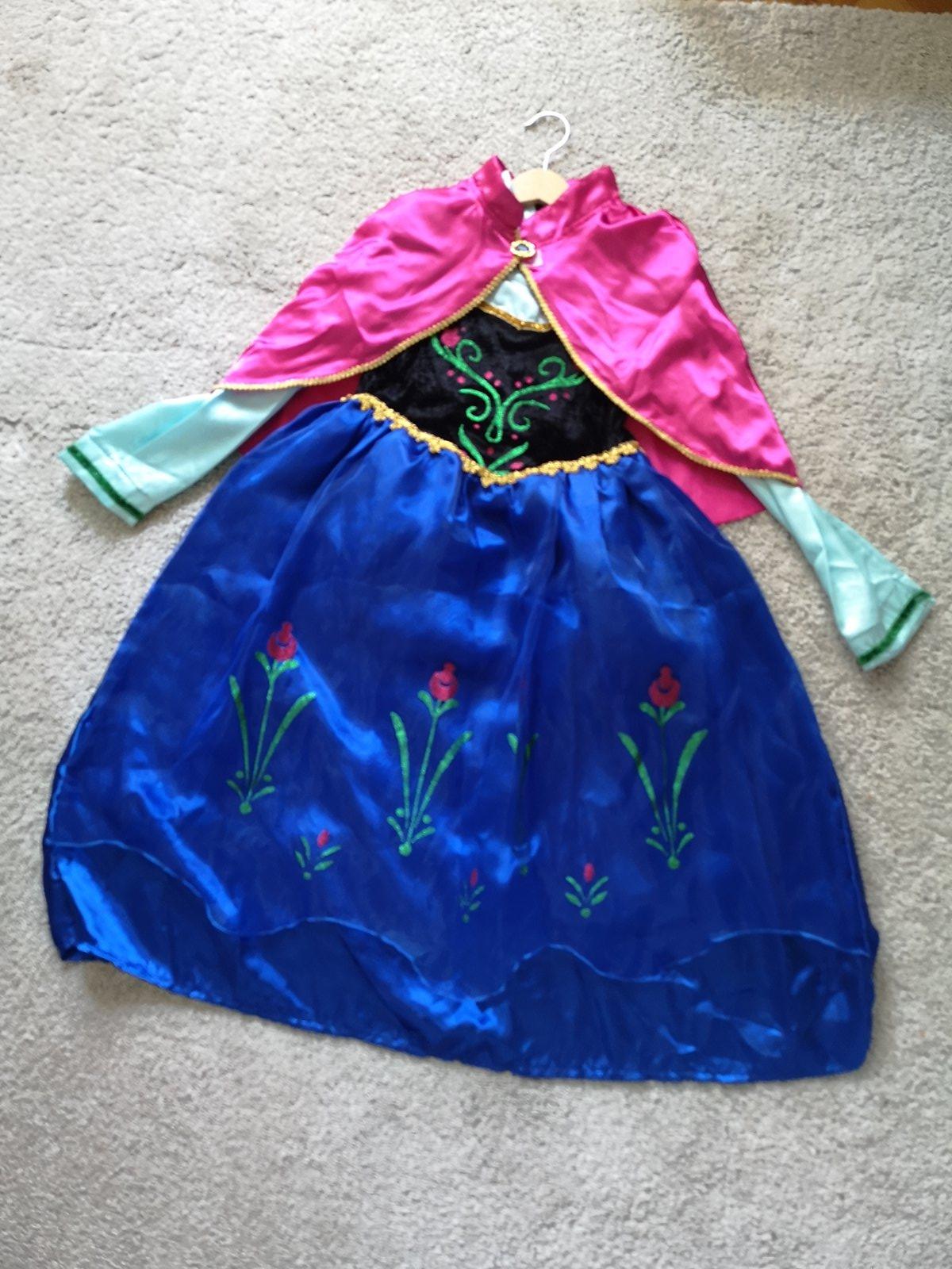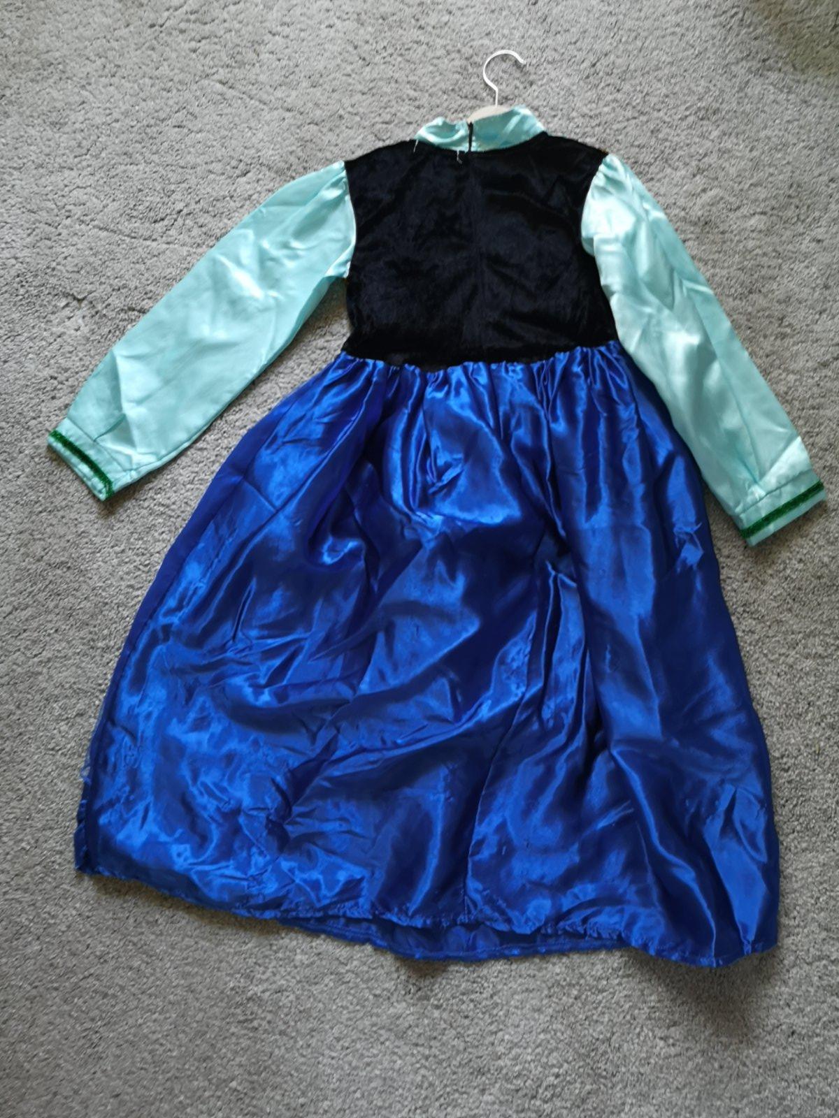 Jeden krát oblečený kostým Anny z rozprávky FROZEN. Pekné detaily. Bez poškodení. Moja dcerka ho mala keď nosila 116 ale bol jej trochu voľný preto uvádzam veľkosť 120.