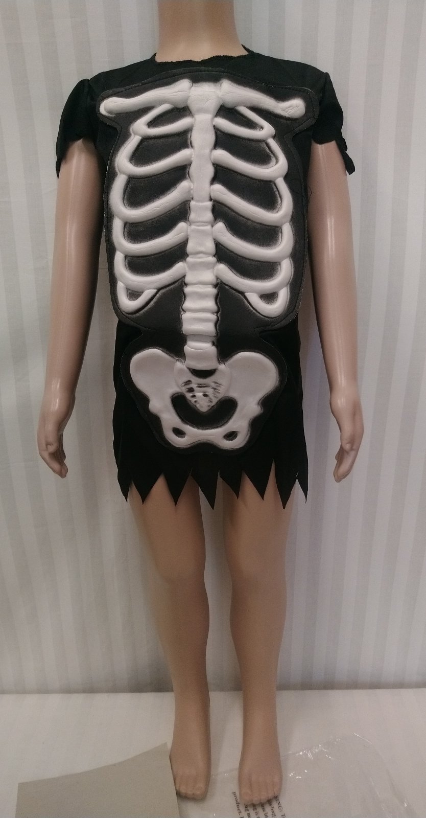 Nový kostým Strašidelná detská kostra, Skeleton, obsahuje čiernu tuniku s bielym motívom kostry - plastický motív, tunika má vzadu zapínanie na suchý zips,