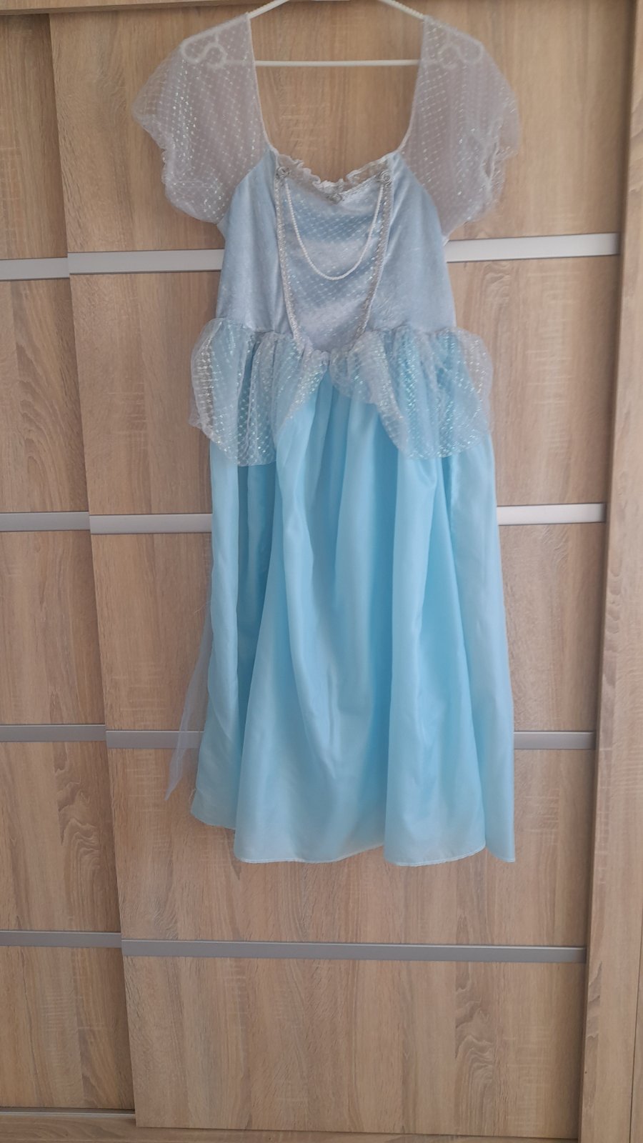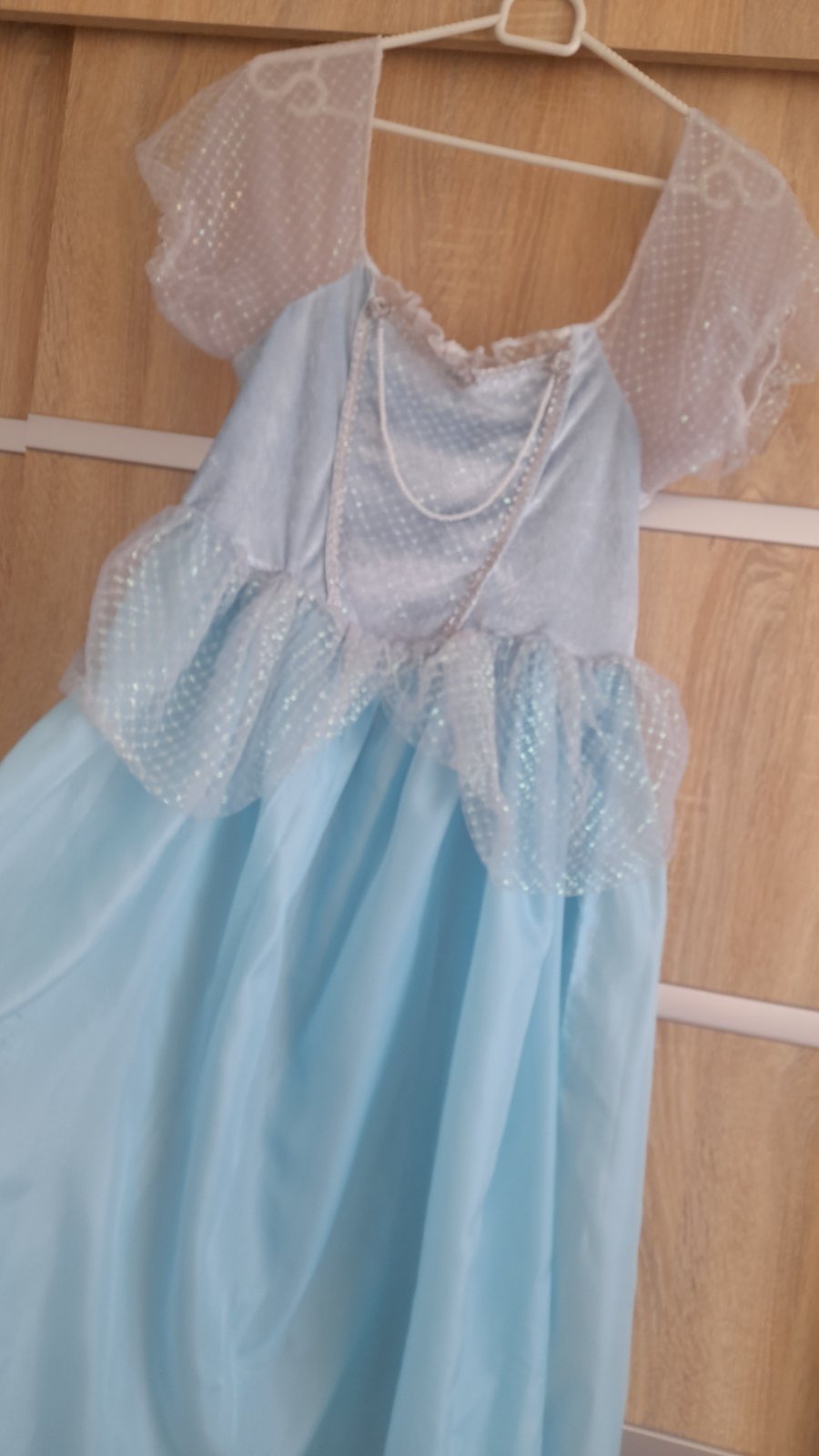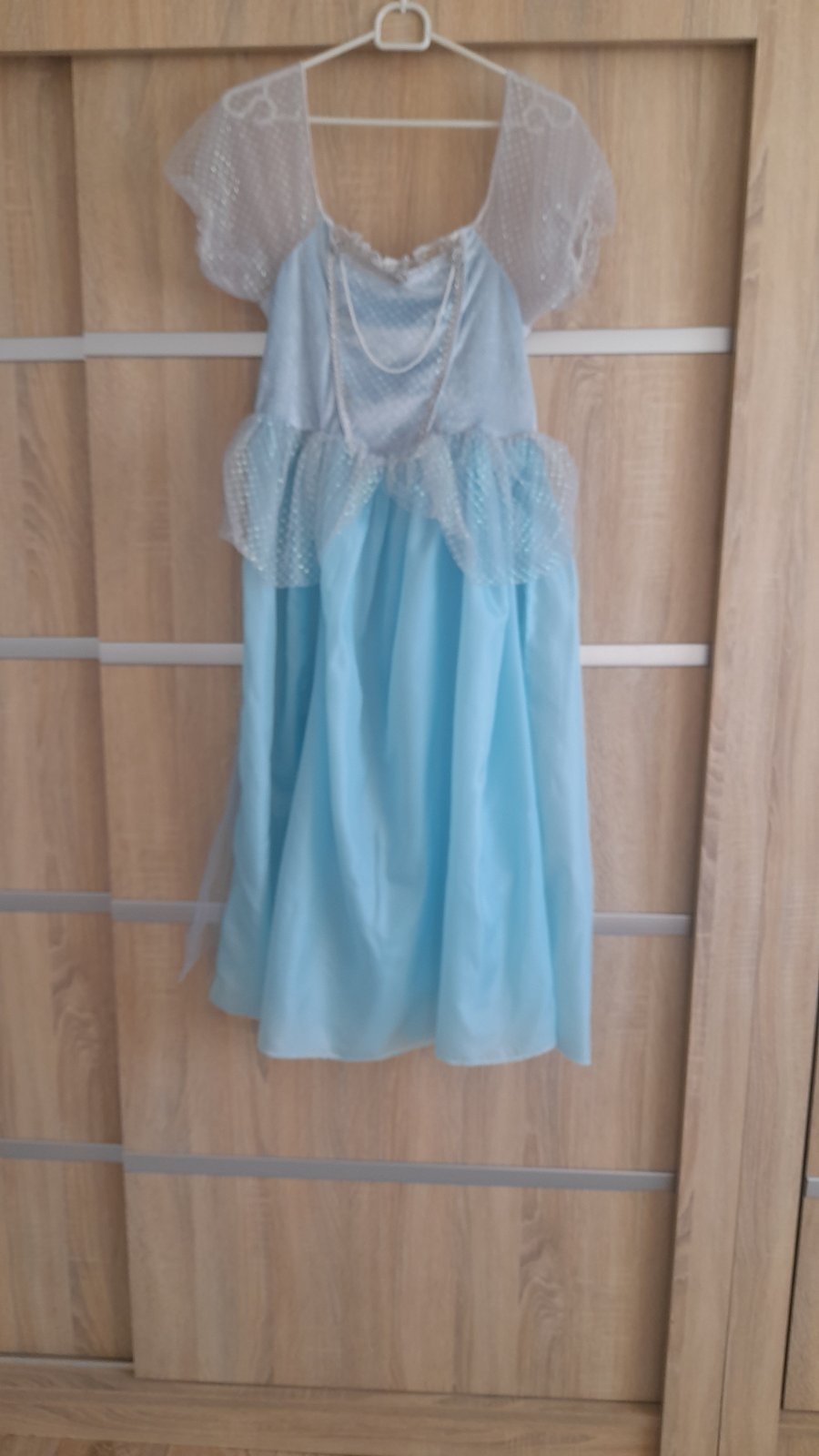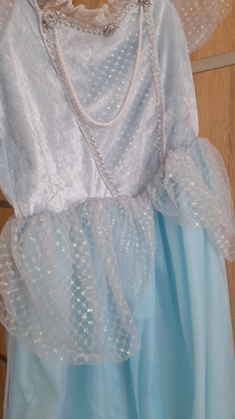 Kostým v dobrom stave , na sukni je zasita dierka viď foto a na látke sú také ako keby odltacky ,stále použiteľné