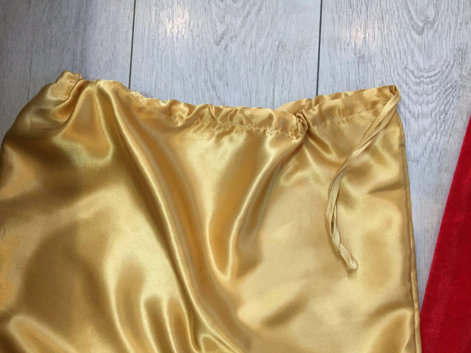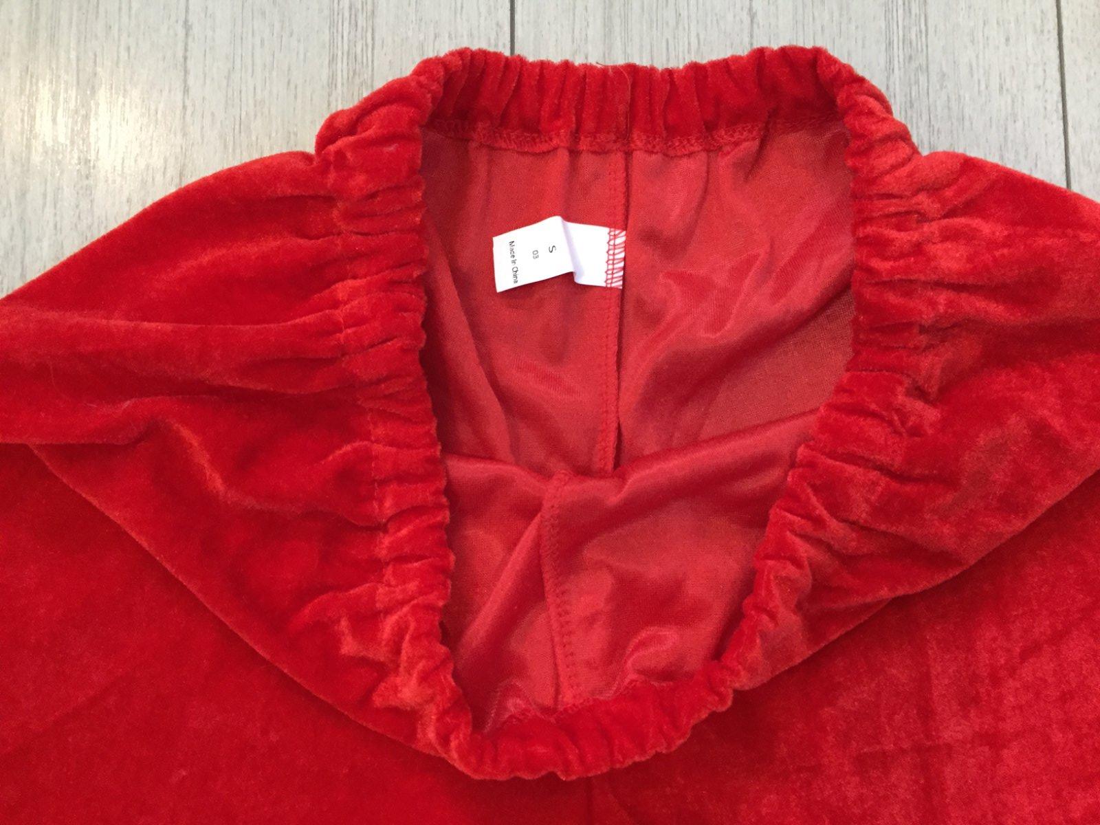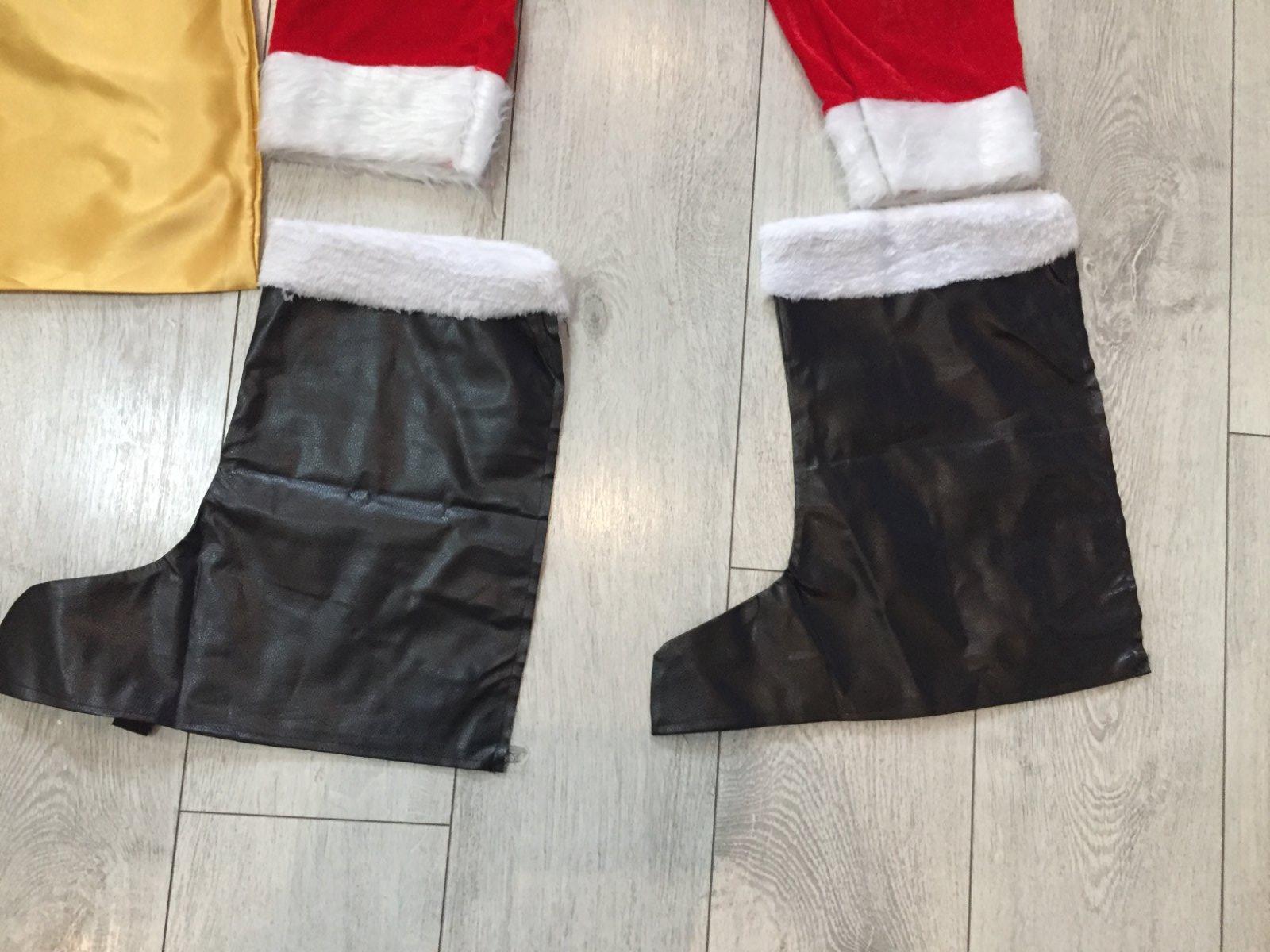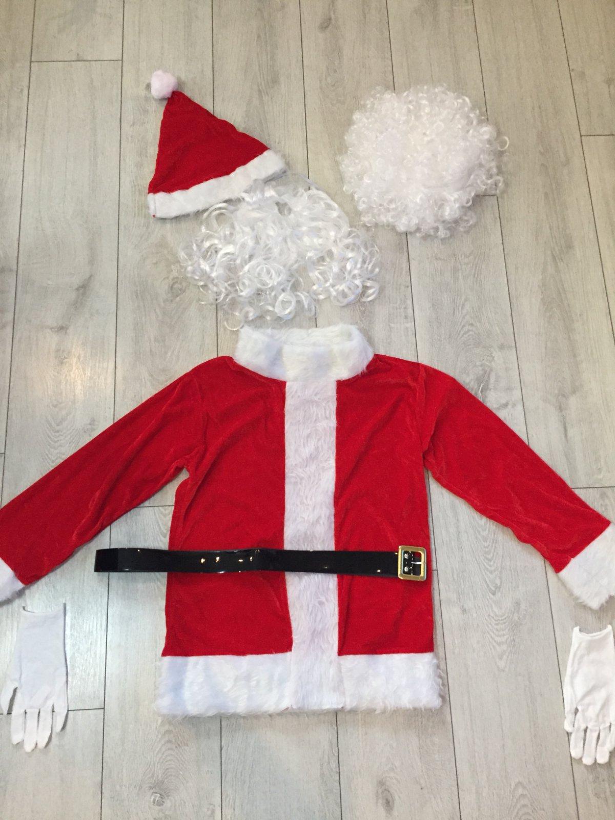 Kostym Mikulaš raz oblečeny vo vybornom stave. Velkost S, sedi na cca 158/164. Vrch dlžka 66cm, širka cez pazuchy 48cm, rukav 54cm. Nohavice dlžka 86cm, širka v pase 3cm. Ciapka obvod 58cm. Vrece na darčeky 47cmx70cm. Opasok dlžka 117cm. Rukavice dlžka 22cm. Plus zvonček, okuliare, navleky na topanky, parochna a brada.