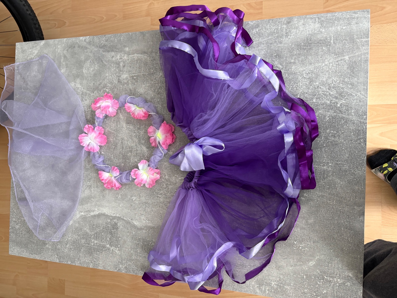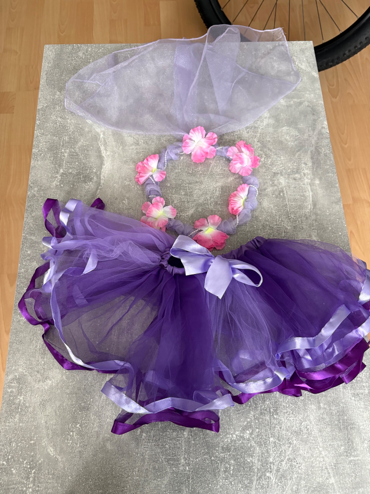 Set obsahuje: - šaty - taška cez rameno - parochňa - mašľa - náušnice - tetovačky