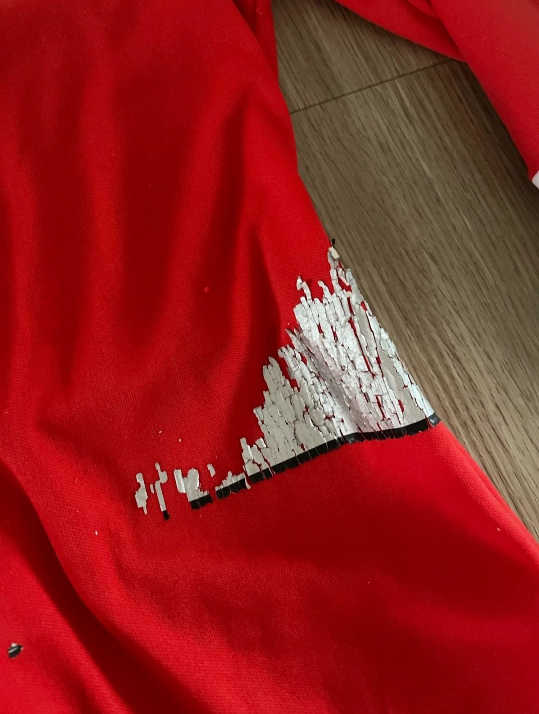 Nosené, praním sa odlepila časť potlače, vid. foto, bežné známky nosenia
