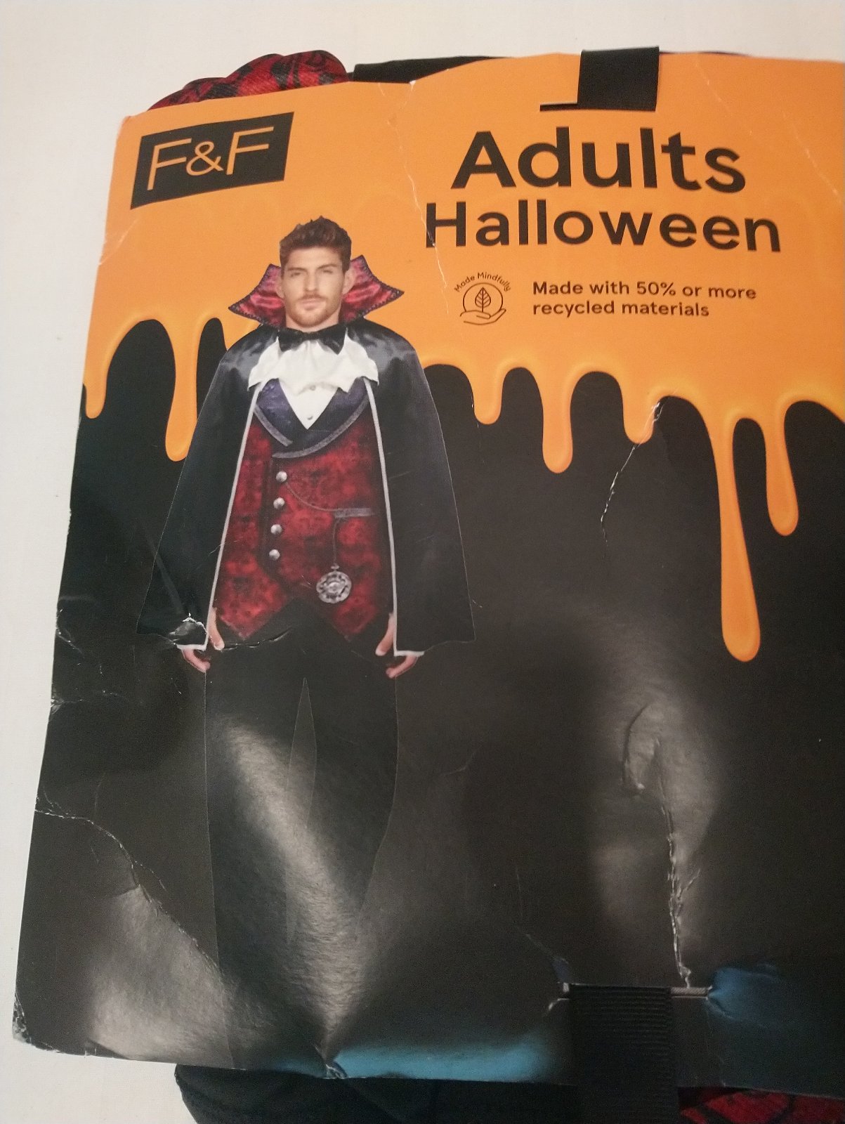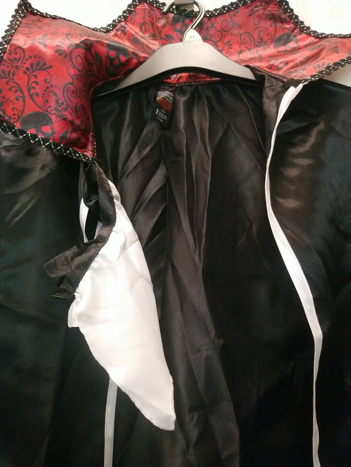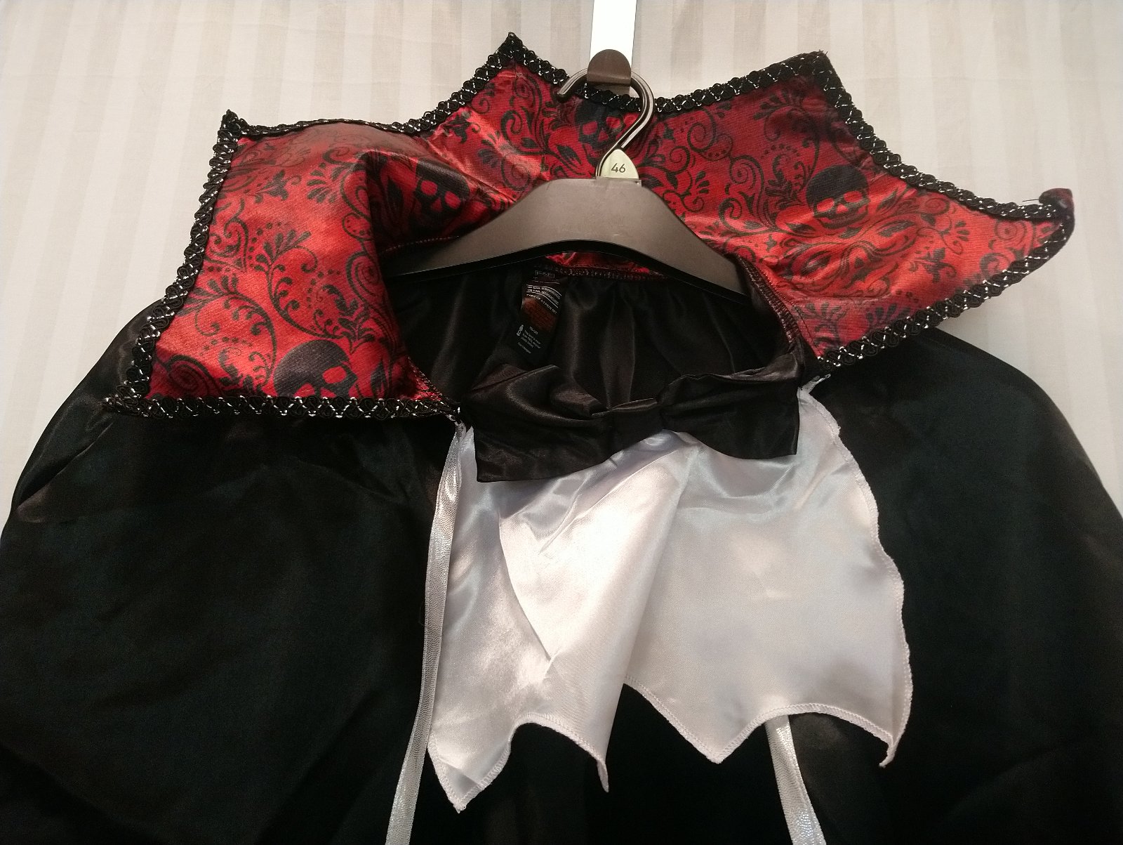 uvádzaná veľkosť na štítku L, ale plášť je univerzálny, vhodný pre dospelých, poprípade sa dá plášť použiť aj na inú príležitosť k inému kostýmu,