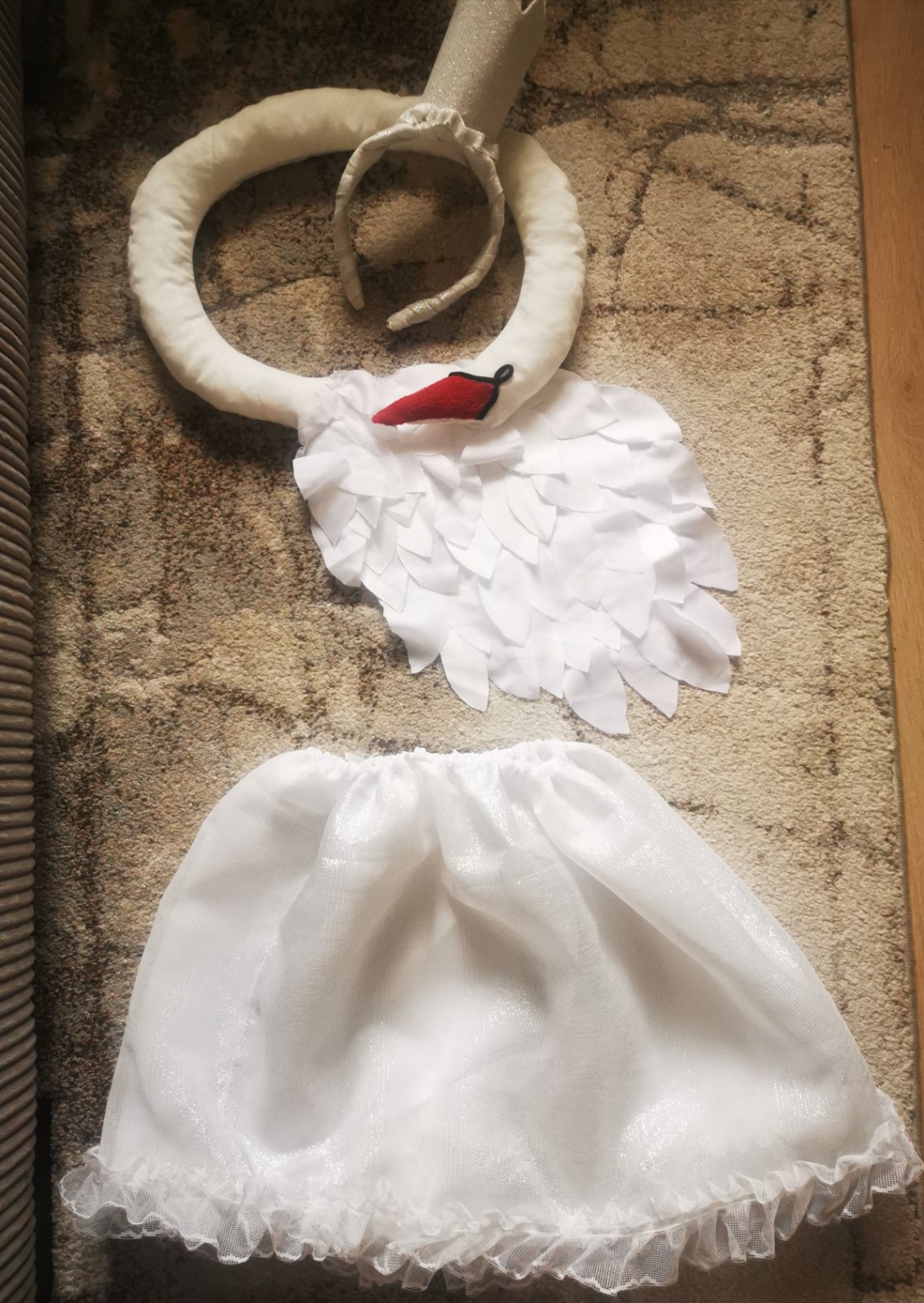 Ukážka kostym LABUŤ ktorý je predaný. cca 128 dlzka sukne 38cm.sukna je 2 vrstvová,na gumičku, Vrchna je lesklá