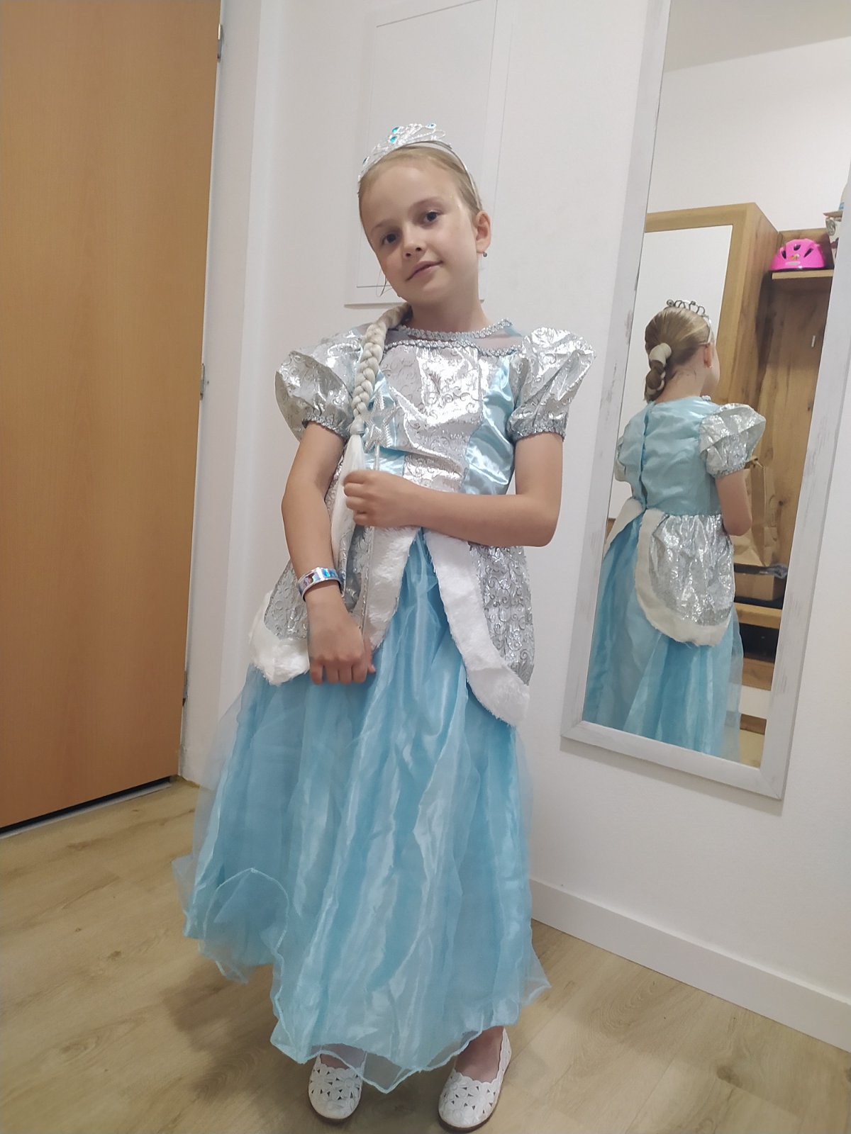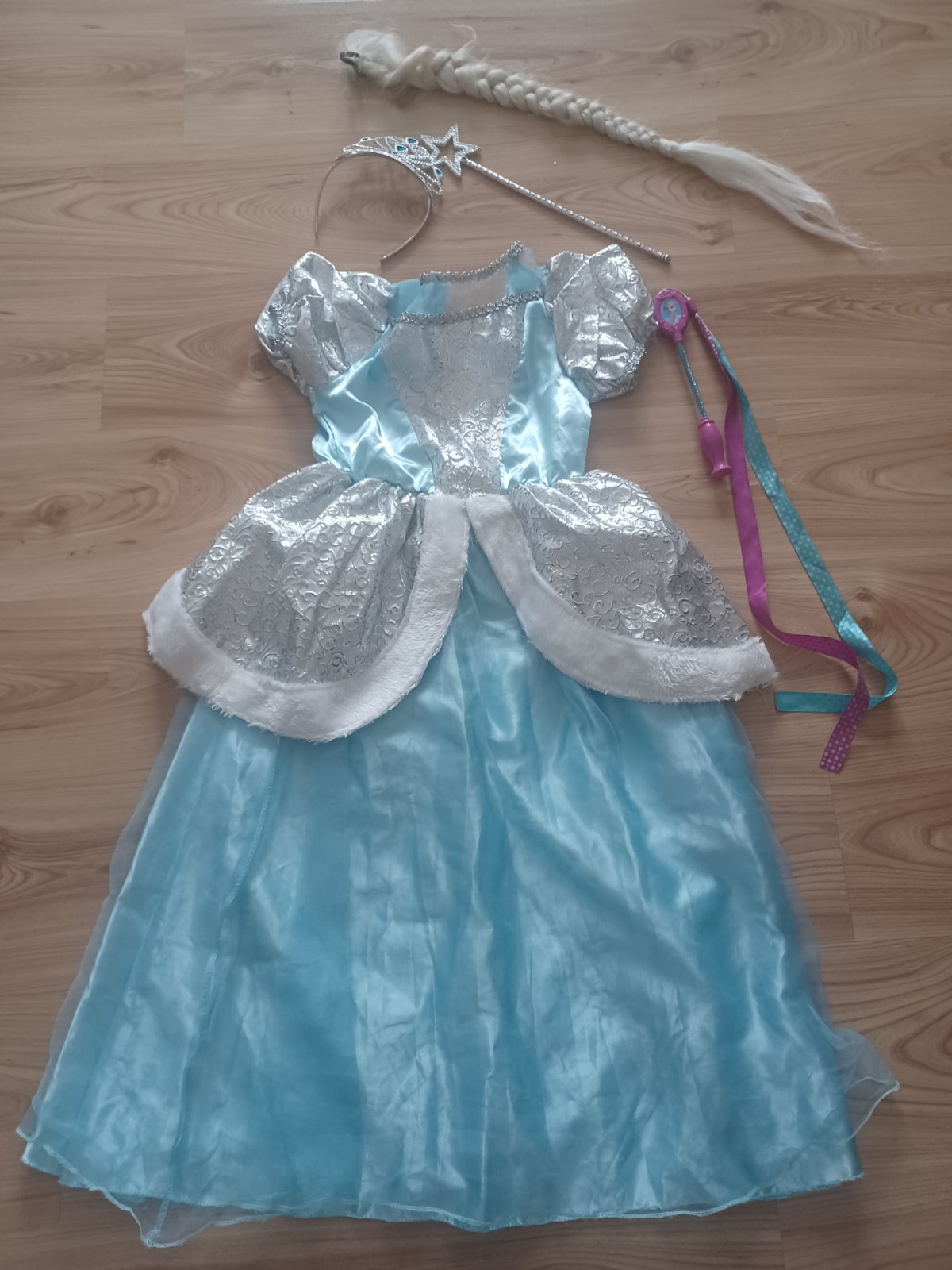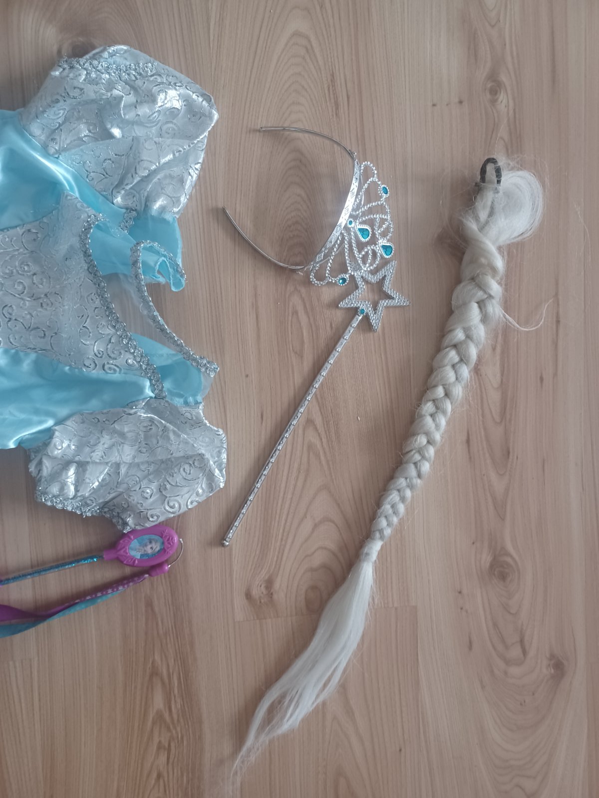 Noseny stav, paradu este narobi. Sem tam zatiahnutie, pri tom type latky sa tomu neda vyhnut, sem tam zmolky. Vek je pisany na 3-4 roky. Chybaju doplnky ako celenka a naramky. Da sa aj bez toho. Ce...