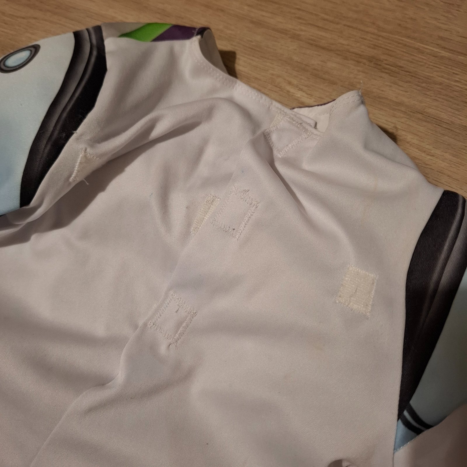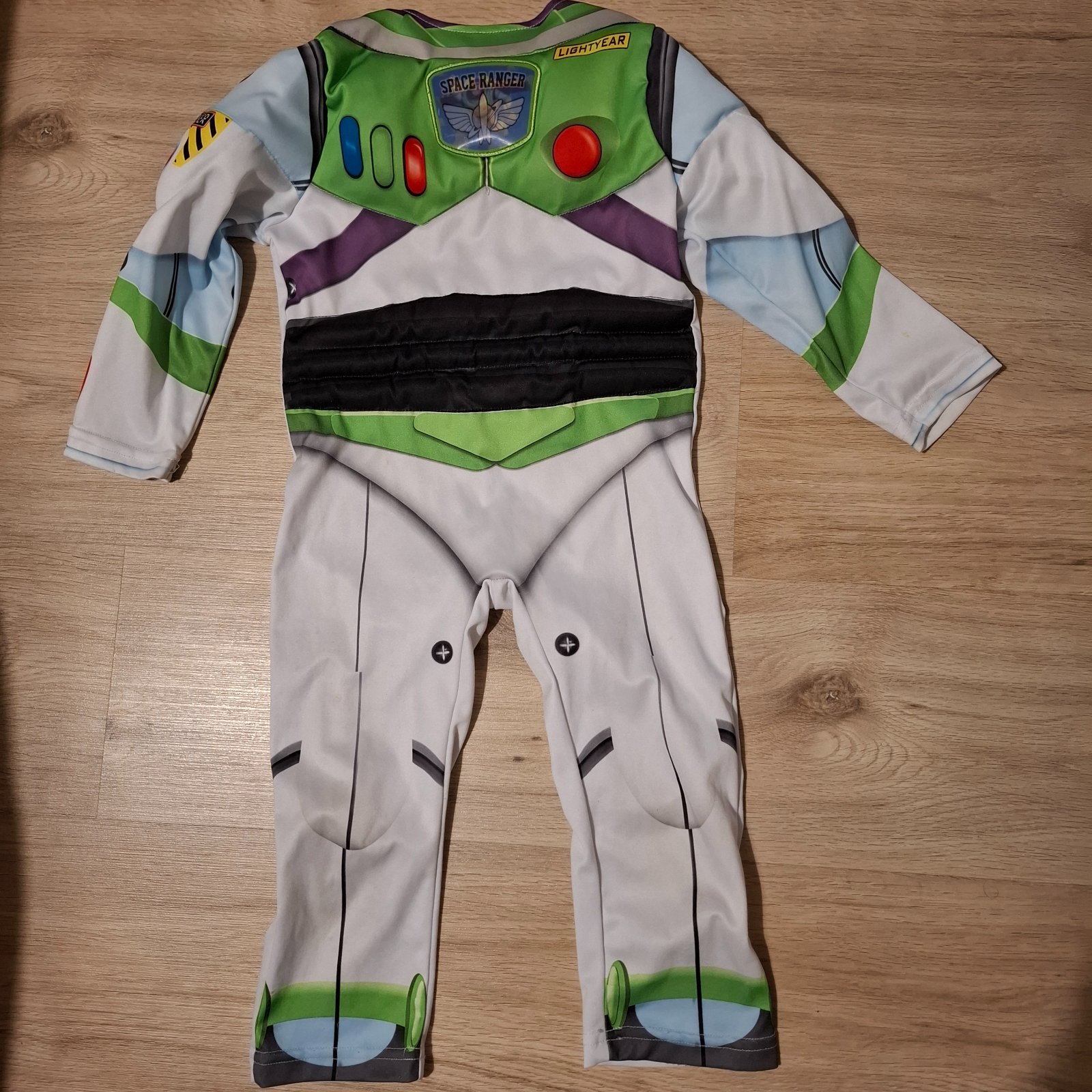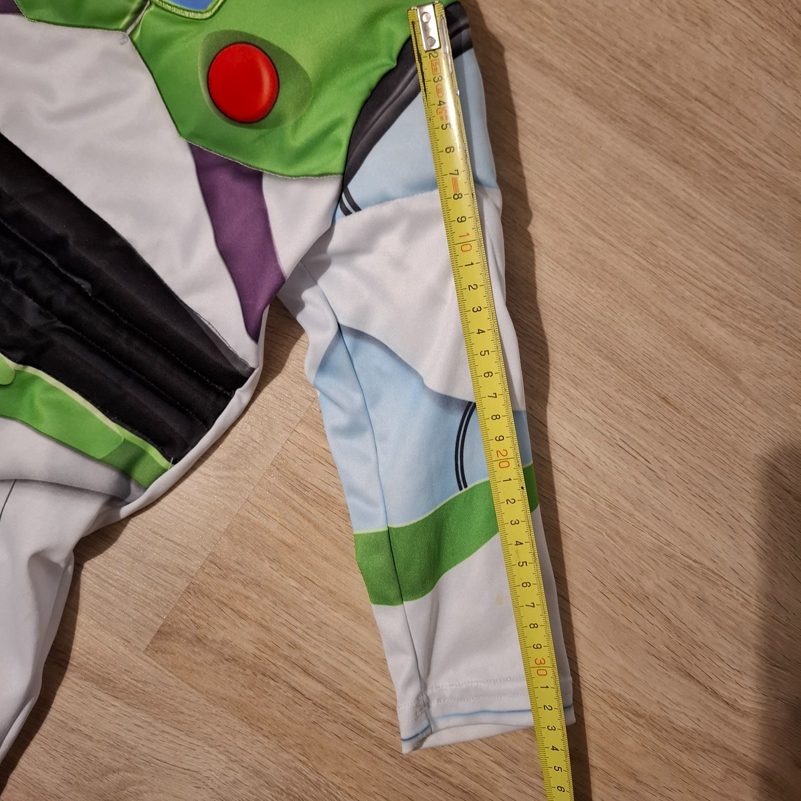 Posuniem ďalej kostým kozmonauta Buzz Lightyear z Toy Story. V dobrom stave. Na chrbte boli pripevnené krídla suchým zipsom, tie ale nemáme. Rozmery na foto. Píše pre 2-3 roky, ale malý obliekol aj keď mal 5 rokov, ale bol mu už malý. Odhadujem veľkosť cca na 104. Treba sa riadiť rozmermi. Cena bez poštovného.