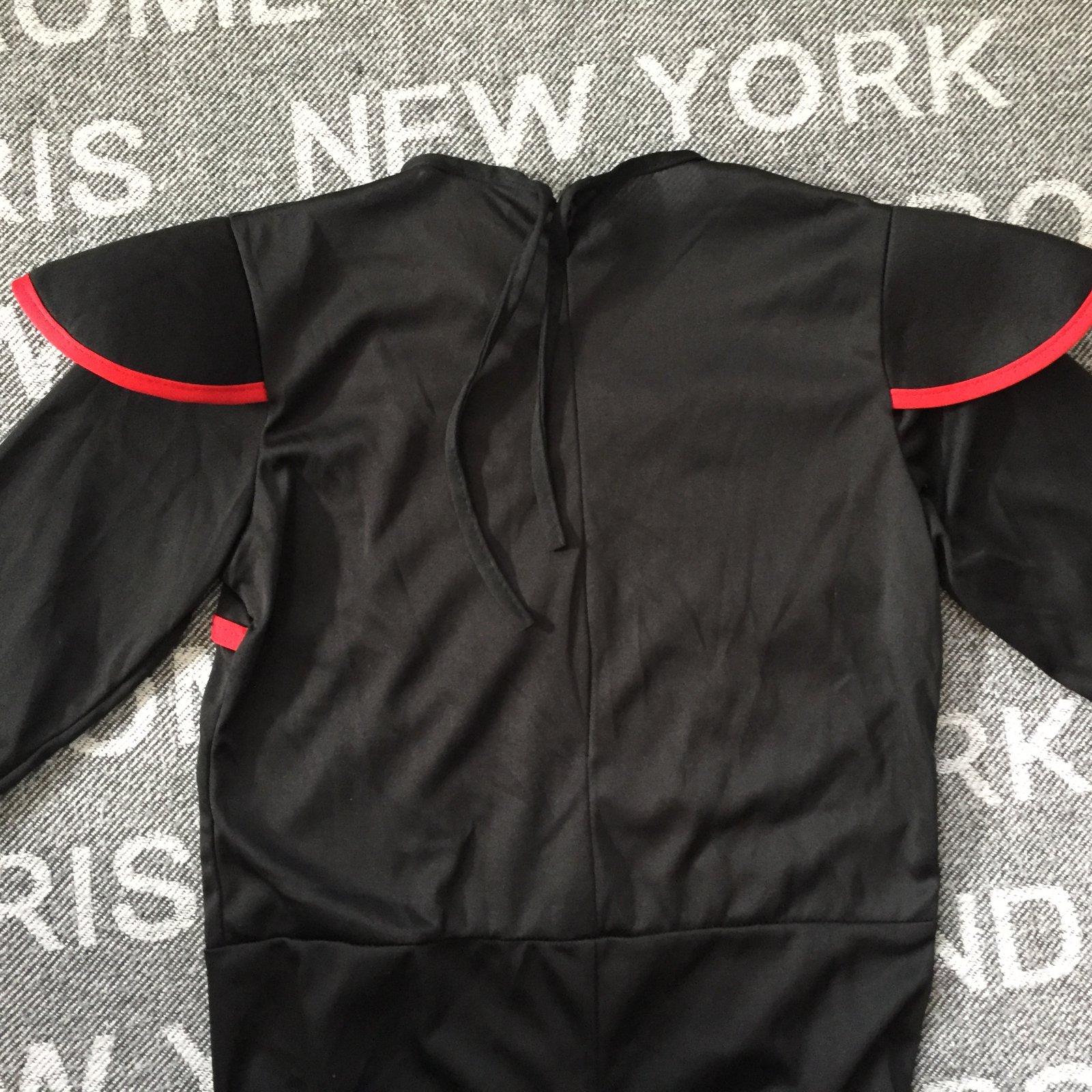 Kostym bol raz obleceny, je bez chyby. Velkost je XL, sedi na 146/152. Dlhy je 115cm, rukav 48cm, sirka cez prsia 39cm, rozkrok 55cm. Opasok na suchy zips dlhy je 73cm