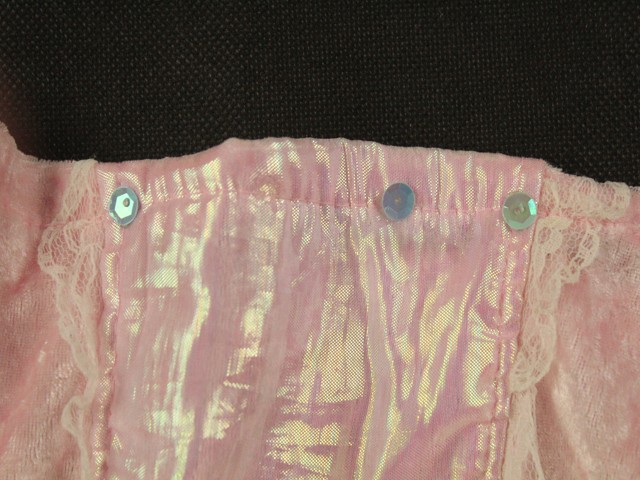 Vo veľmi dobrom stave na šatách sú malé fliačiky inak v dobrom stave. Gumičku na oboch pleciach treba vymeniť.