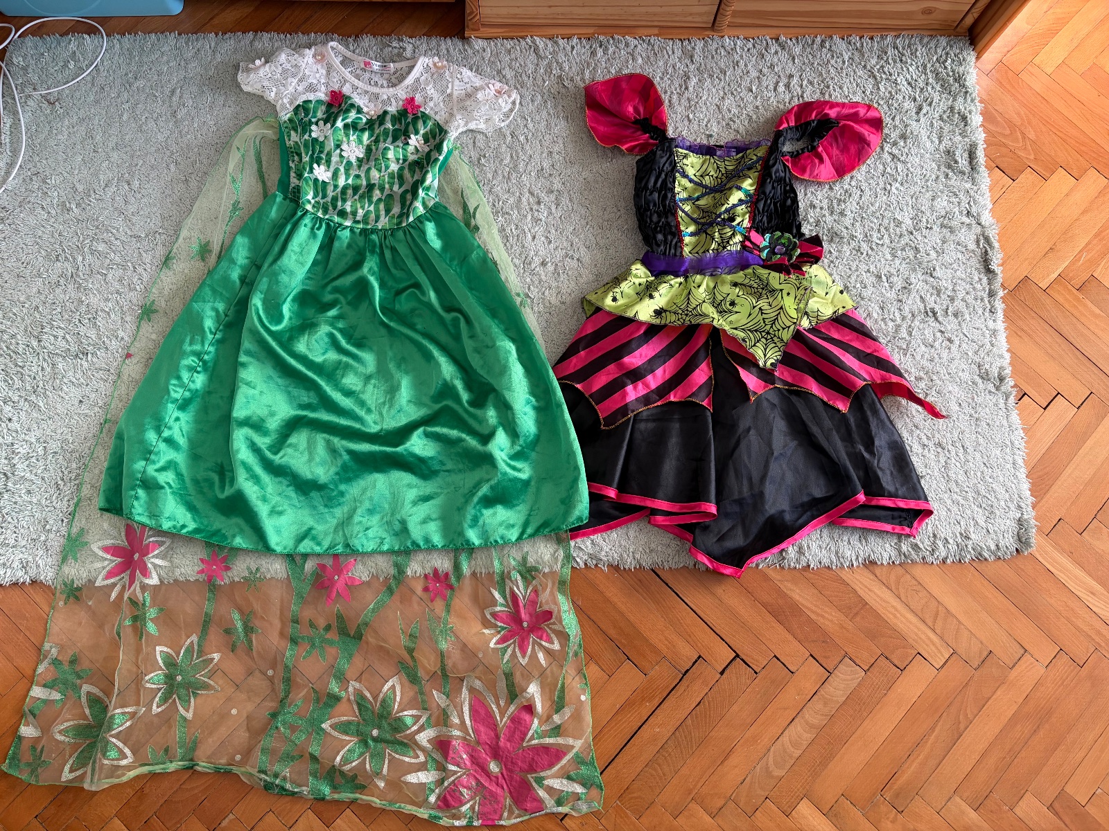 Kostýmy po dcérke v používanom stave. Už nie sú v top stave. Veľkosť cca 122/128. Kus 3 eurá.