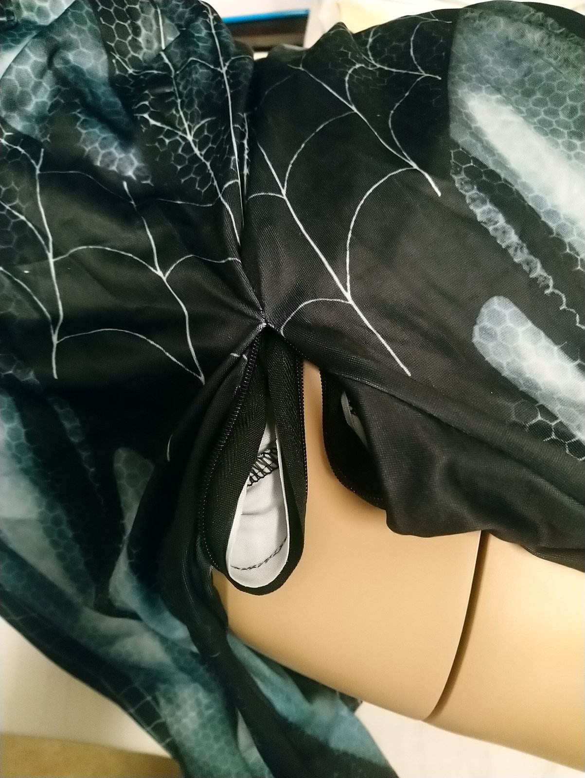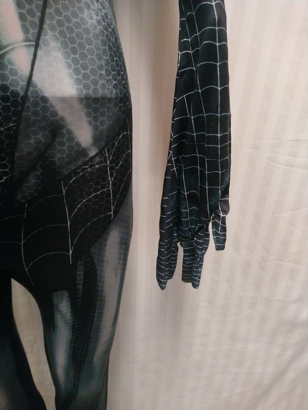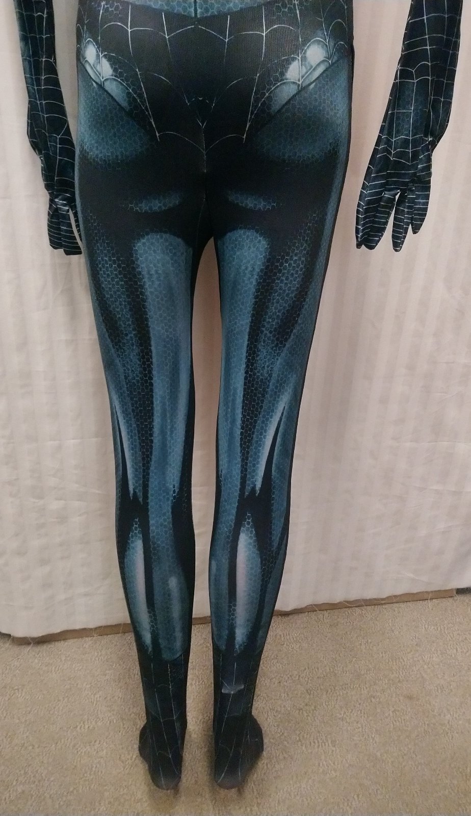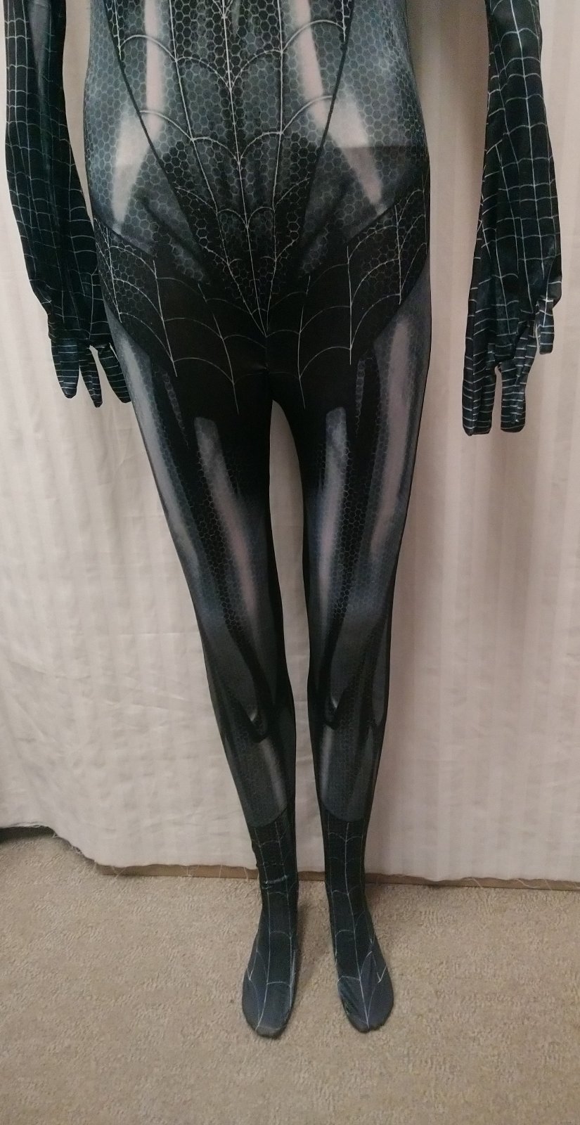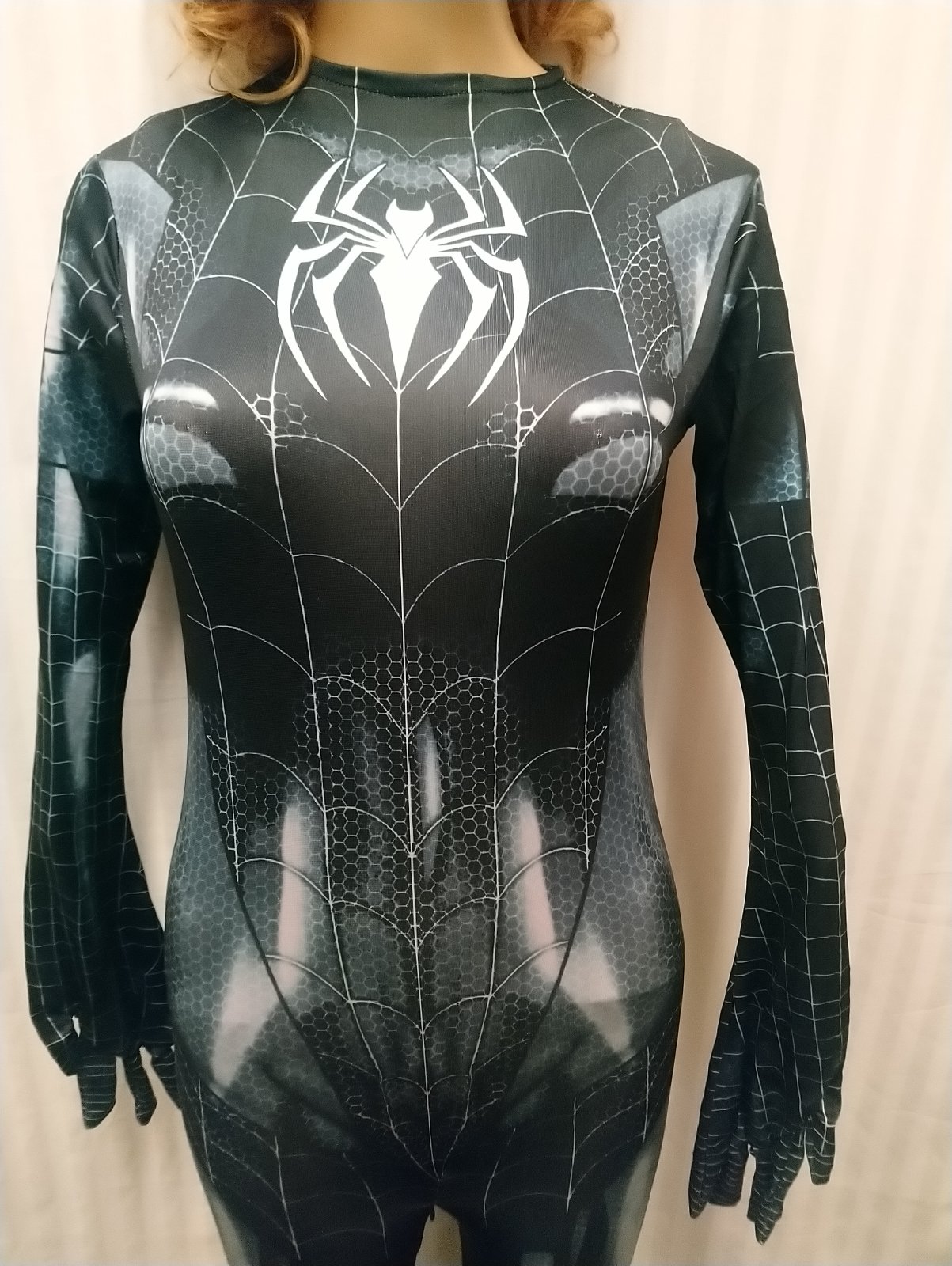 kostým napodobňuje postavu pavúčich žien,je vyrobený z krásnych žiarivých materiálov, je pružný, príjemný materiál na dotyk,