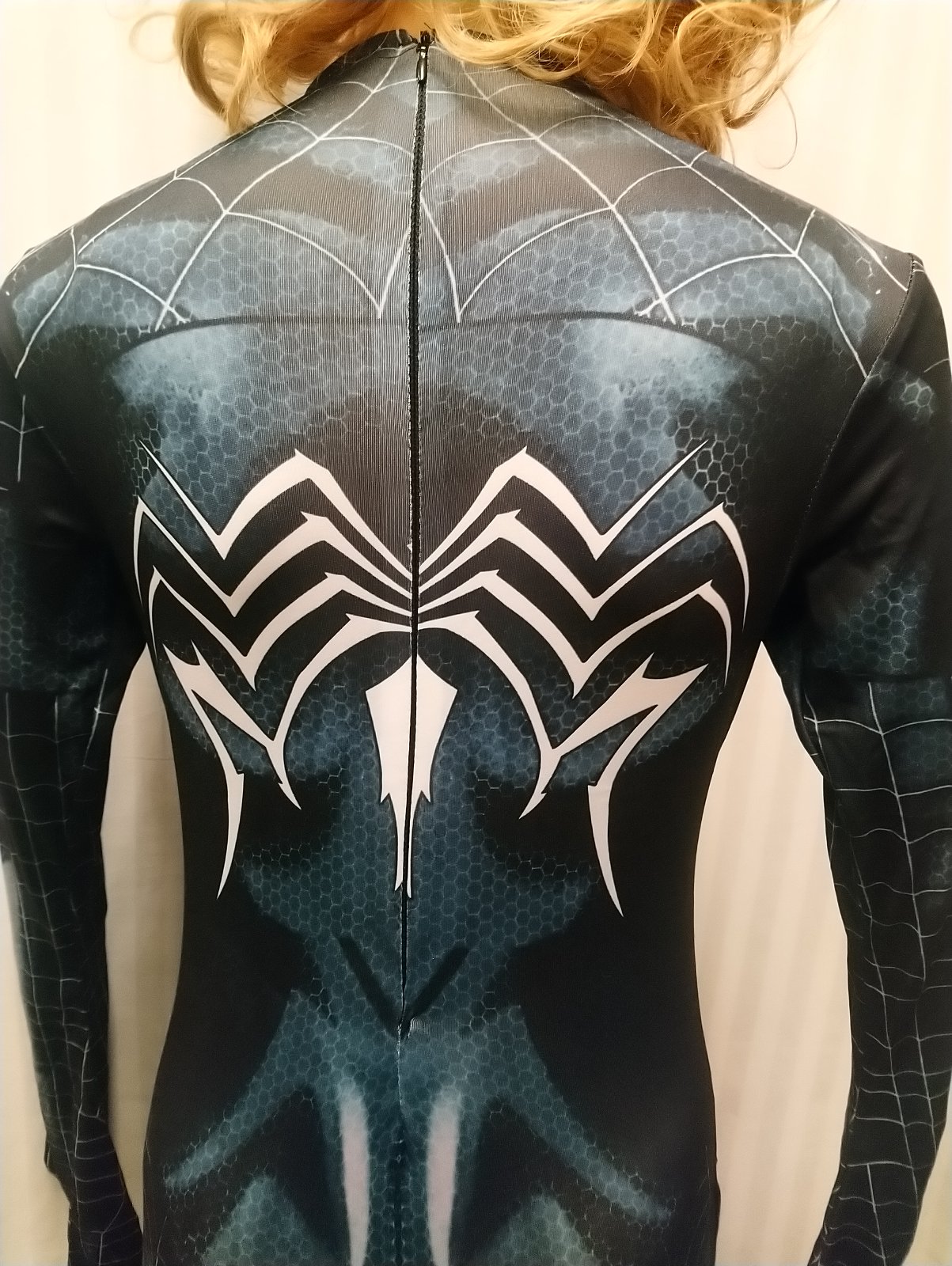 Kostým Spider woman čierny, overal, XS, S, M, je elastický, obsahuje jednodielny elastický overal so zapínaním na zips vzadu, zapínanie na zips v rozkroku,