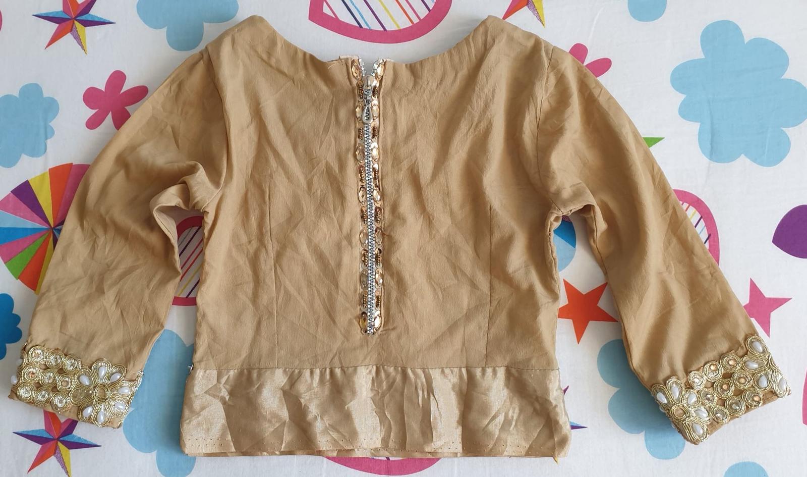 veľmi dobrý stav, handmade, dotvorená kamienkami, gorálkami a prepracovanou výšivkou, v spodnej časti po bokoch cvoky, hnedej farby v kombinácii so zlatou, odhadom na 3-4 roky, premeriam, poštovné 3€(doporučene)