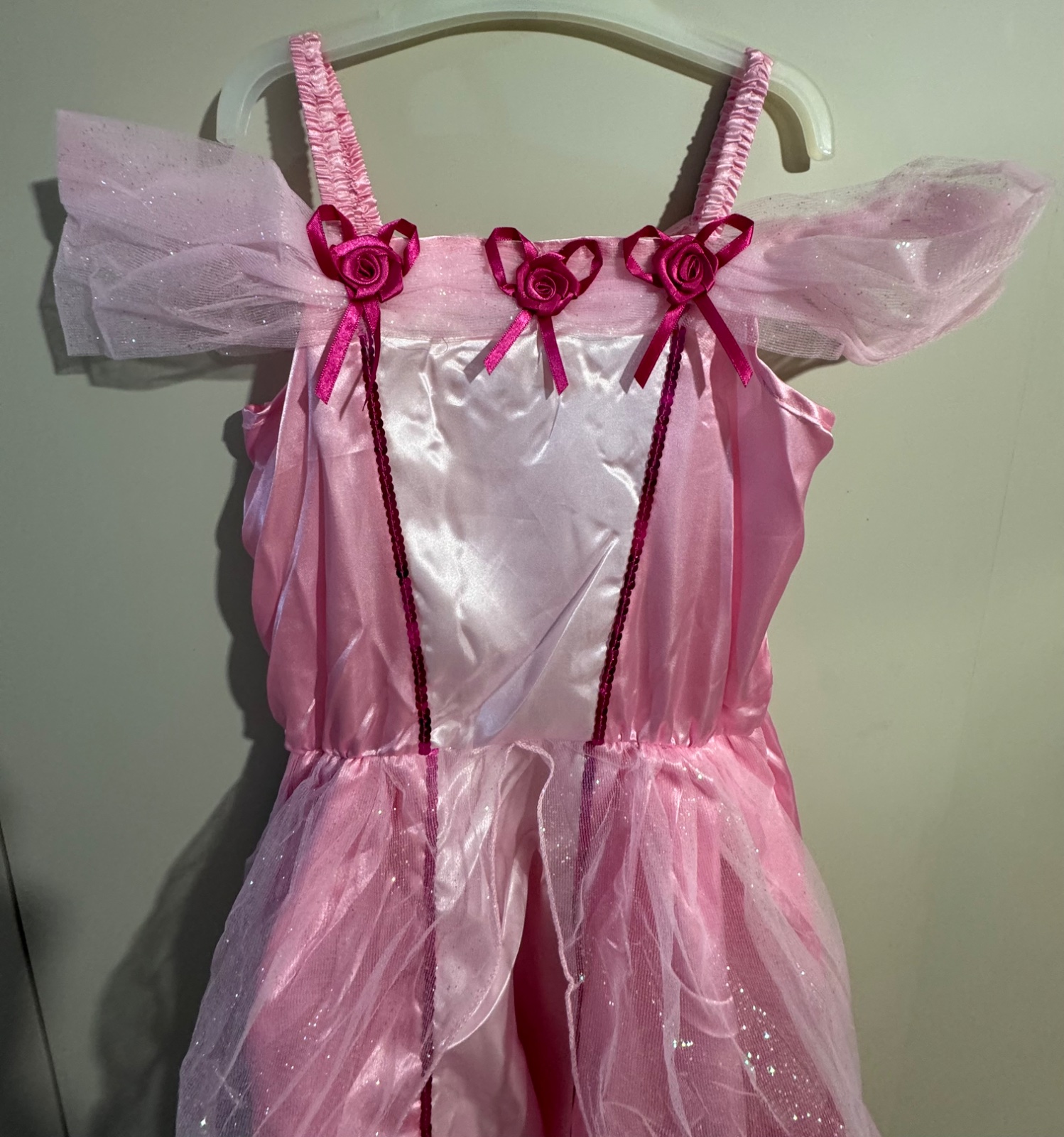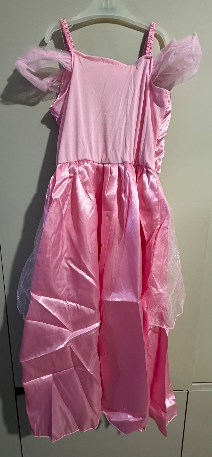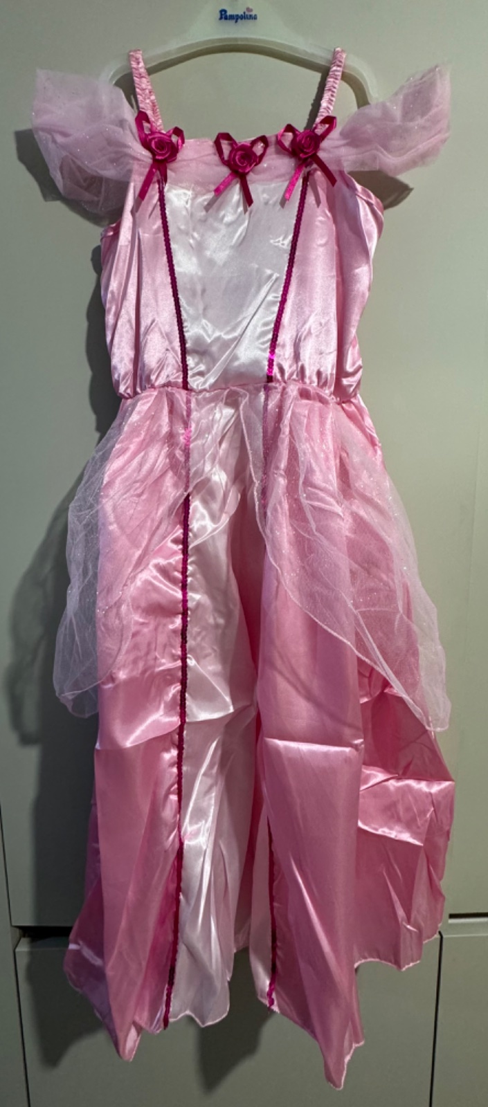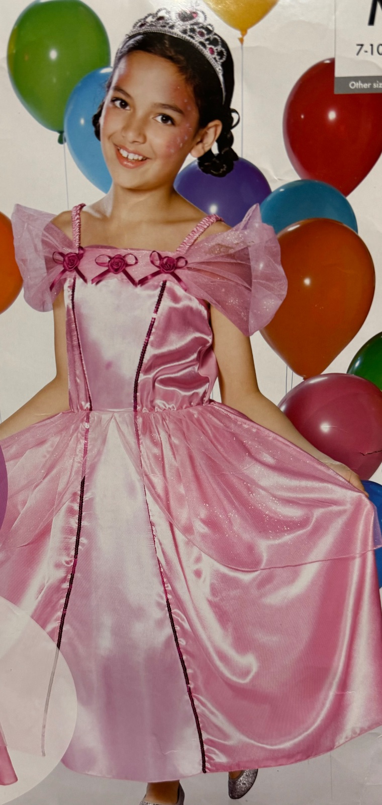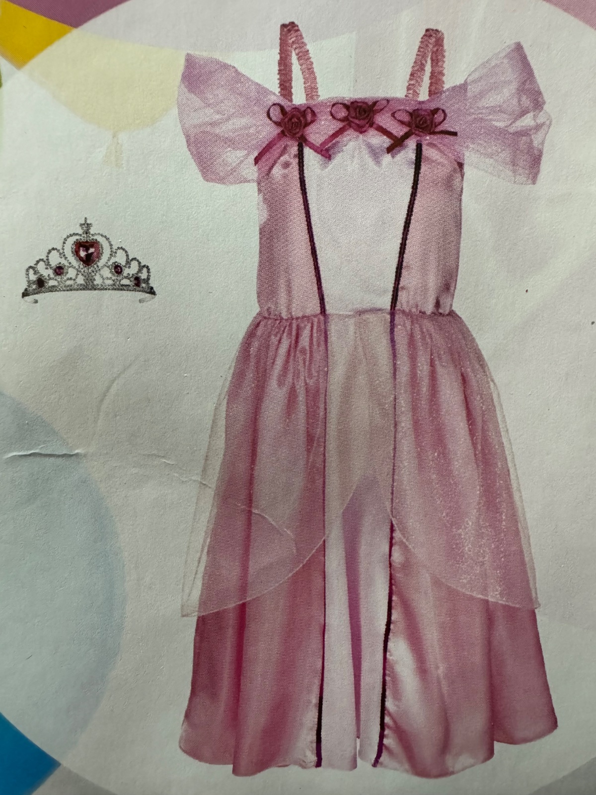 Princeznovské šaty v ružovej farbe so širokou sukňou. Je ku nim aj princeznovská korunka. Veľkostne na 7-10 rokov.