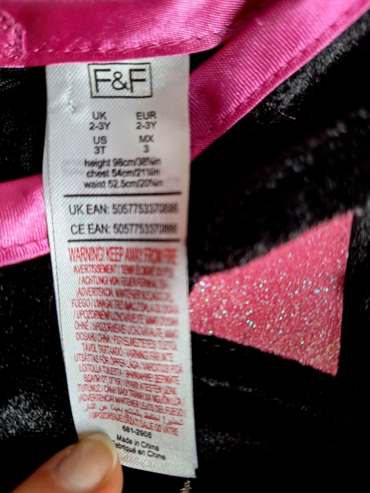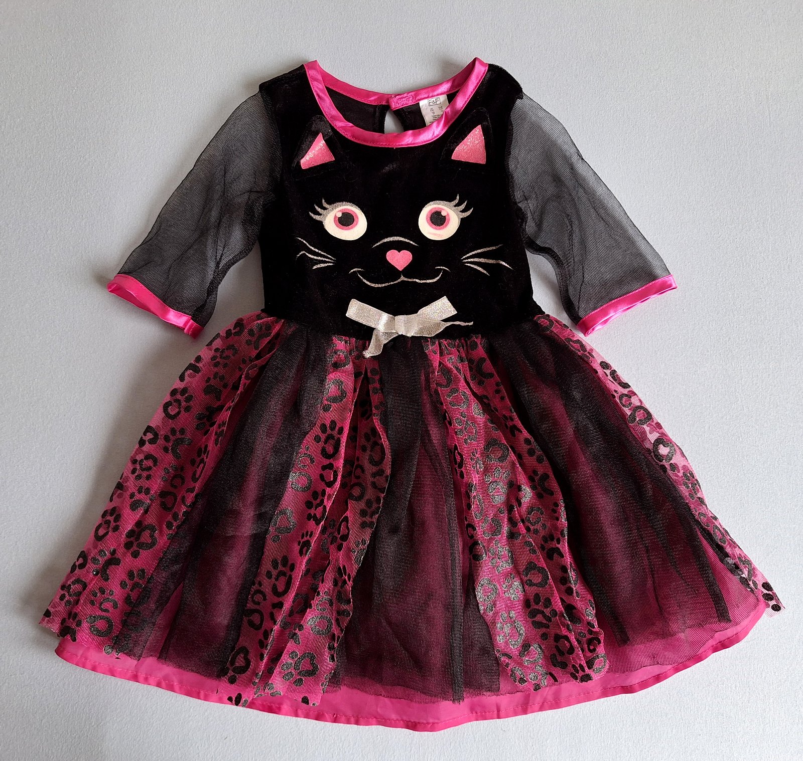 Stav: Parádny stav bez poškodení . Zamatový živôtik, 3/4 rukávy z priehľadnej organzy, v páse guma. Pekne sadnú na postavu. Výrazná aplikácia mačičky na hrudi a na sukničke mačacie stopy – packy.