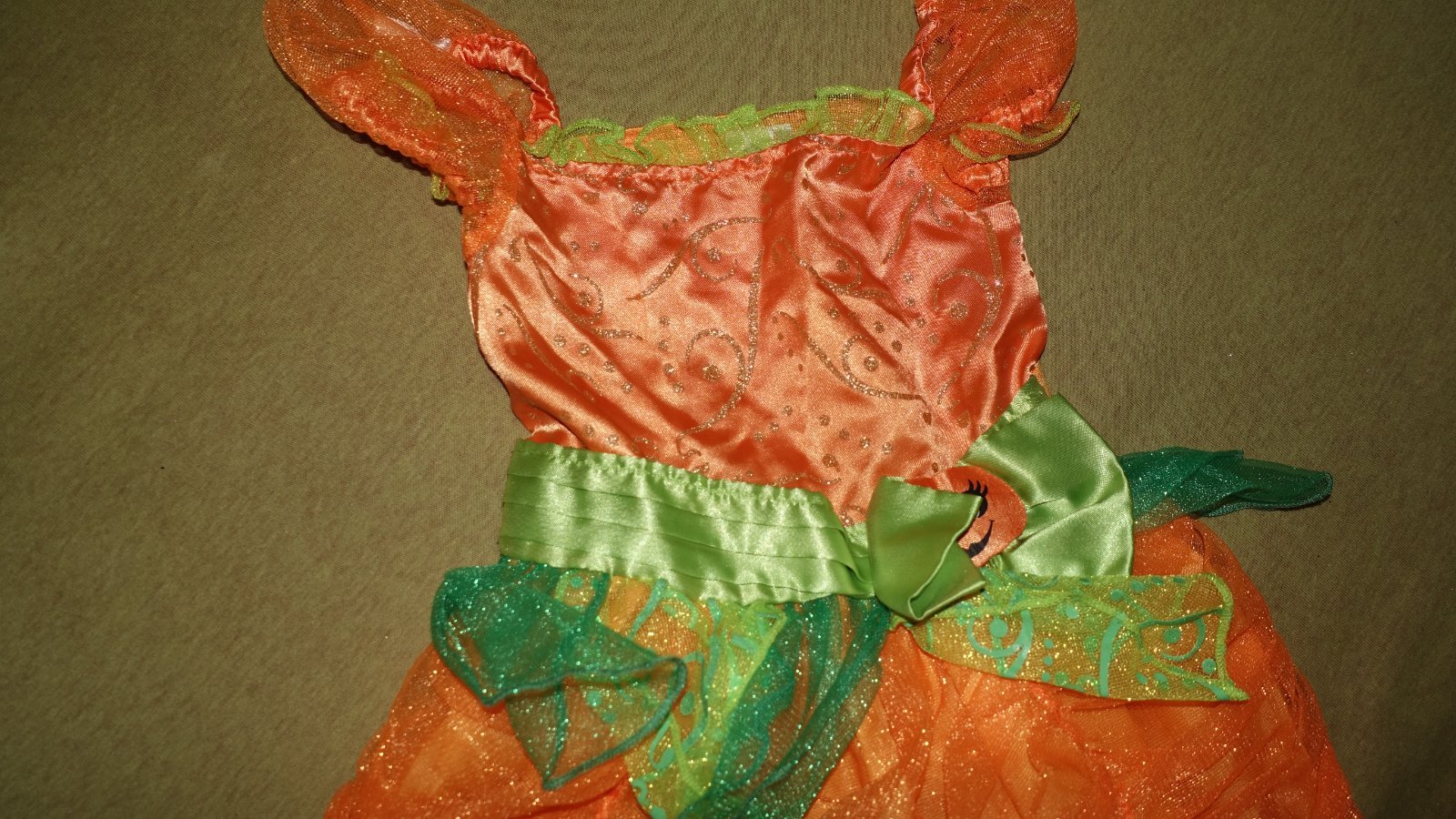 Pekny tekvickovy kostymcek vo velmi dobrom stave. Velkost je uvedena na 2-3roky.