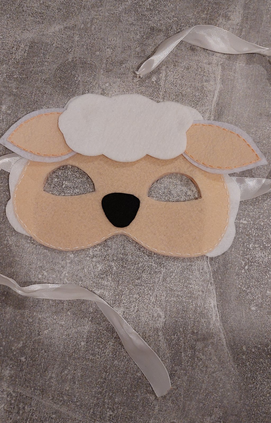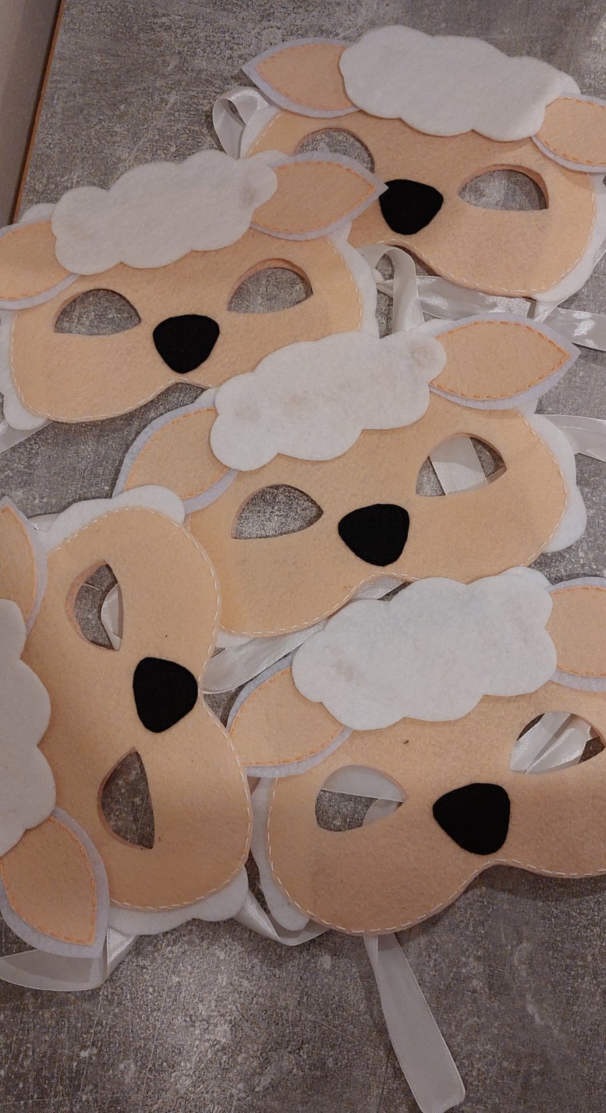 Karnevalova maska na tvar - ovečka. Rucne sita, da sa lahko prisposobit hlave, kedze po bokoch su stuhy, ktore sa daju zaviazat. Vhode pre male deti od cca 2-3 rokov aj pre skolakov. Pripadne aj pre dospeleho. Ihned k odberu - 5 ks. Cena s postovnym.