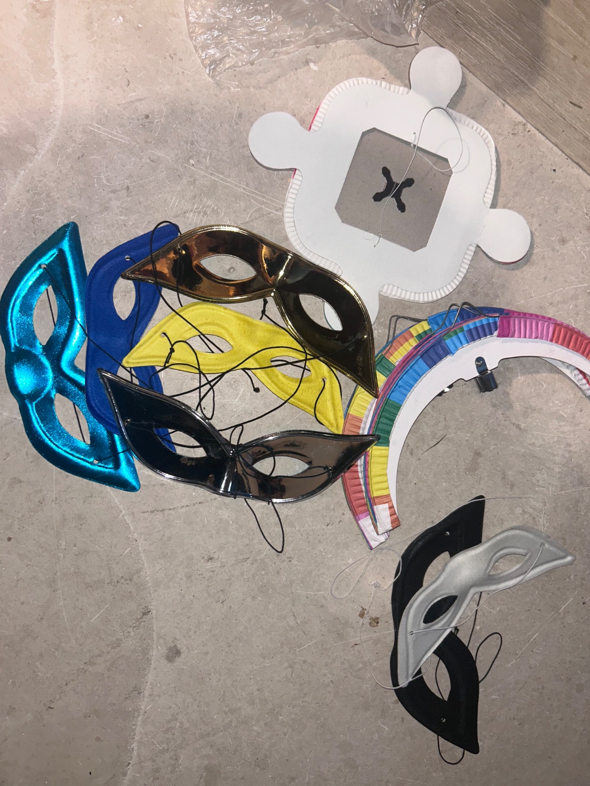 Balenie obsahuje 4ks masiek (viď. obrázok). Masky sú na gumičke. Mateiál: papier.