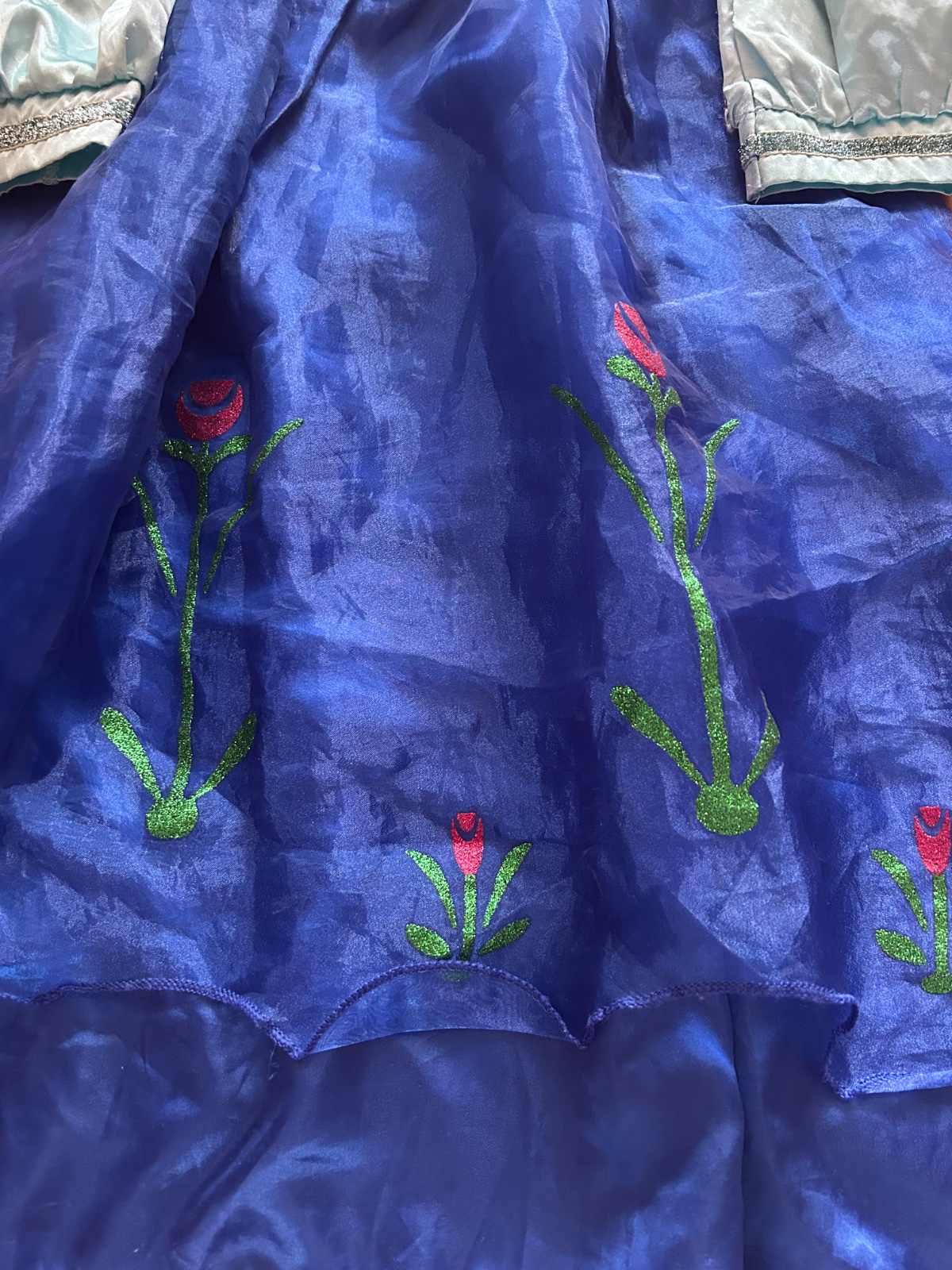 Veľkosť na štítku 4az6 rokov Pekný kostym vrátane štipca do vlasov A ruzove umelé vlásky 2ks tiez na sponkach do vlasov Na šatkach vidno nosenie niesu uz ako nove ale stále karneval v škôlke zvládn...