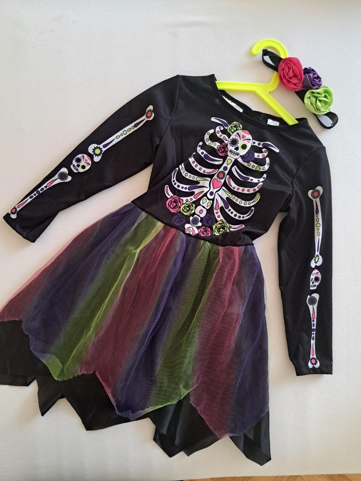 Raz vzatý kostým v štýle mexickeho dna mrtvych, dcera nosila veľkosť 122, keď ho mala na sebe