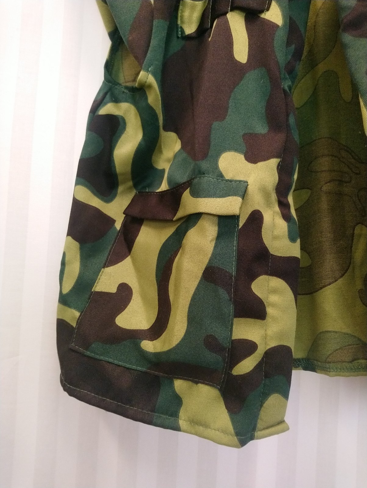 1. maskáčovú kombinézu - overal vcelosti so zapínaním na zips vpredu, v páse gumička,