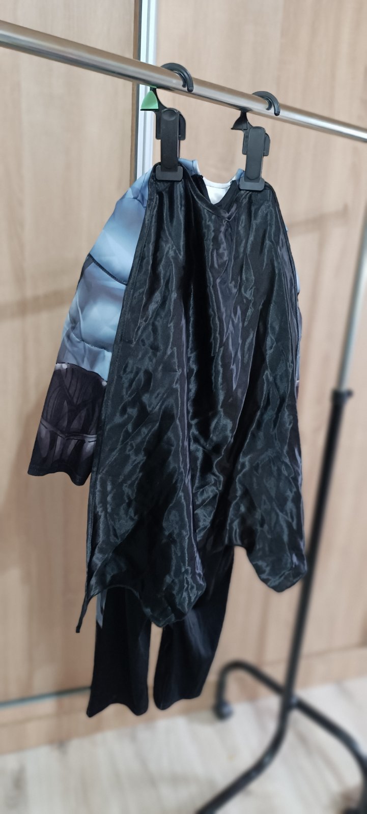 Karnevalový kostým, prípadne kostým na Halloween. Píšu na 8-10 rokov. , ale ja si myslím že skôr je to na 6 rokov. Škraboška je pokrčená, ale dá použiť.