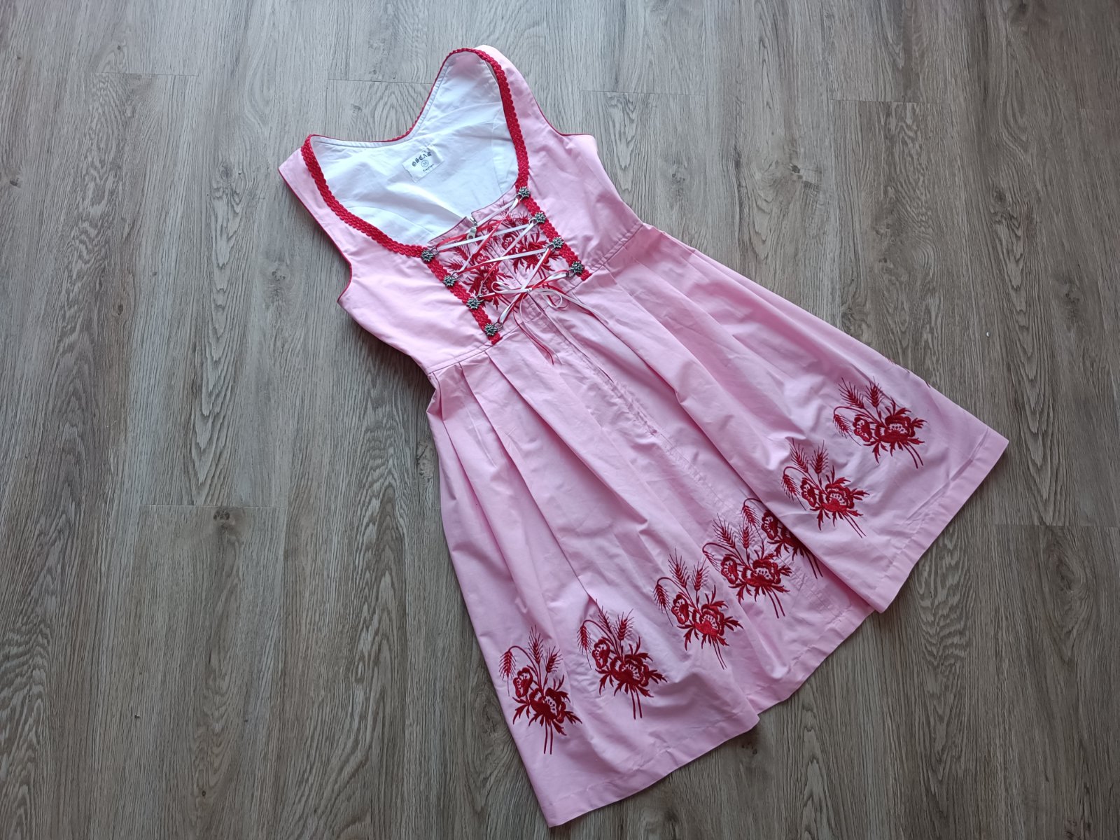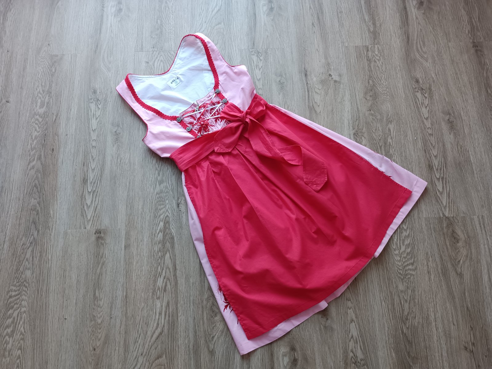 Predám tento bavorský kroj DIRNDL, značka Oscar Trachten, veľkosť uvedená 36, rozmerovo sedí skôr na 36/38, výborný stav, bez poškodení.