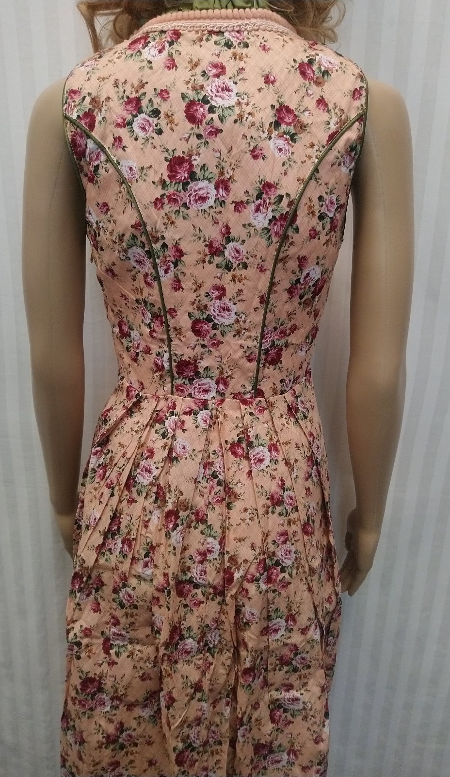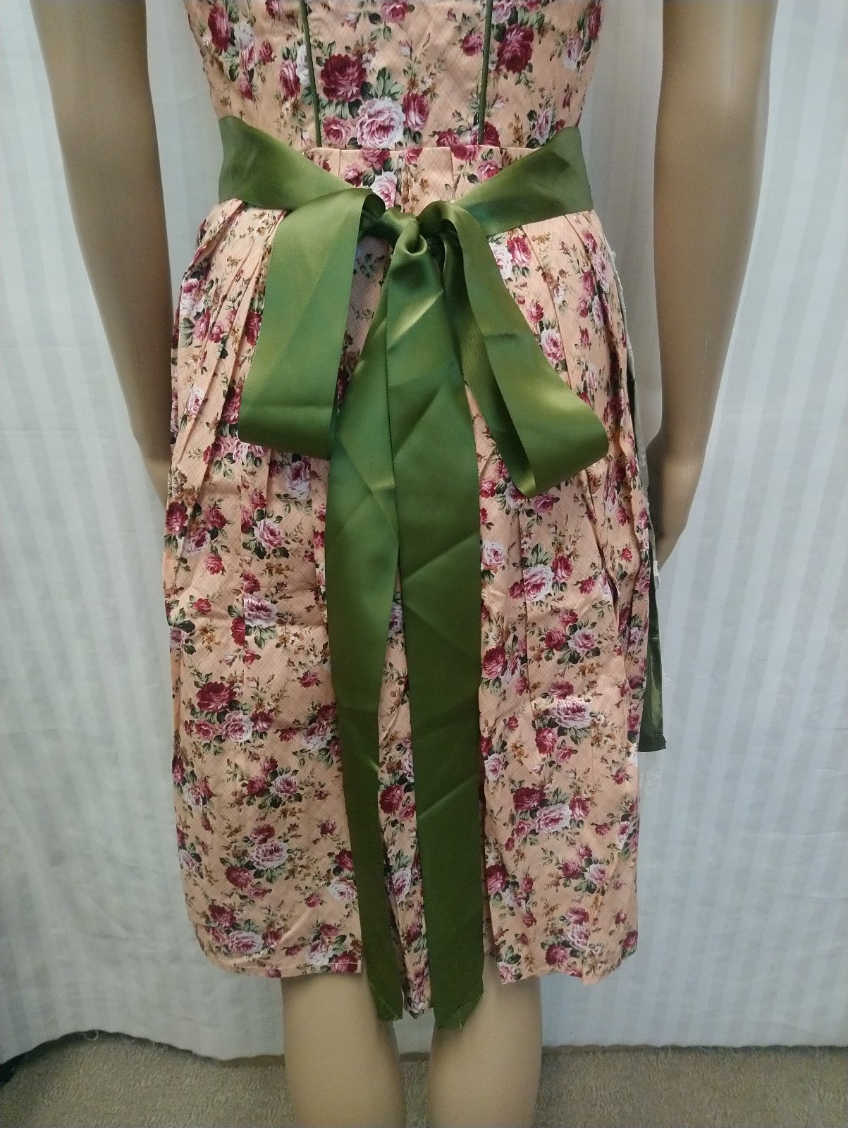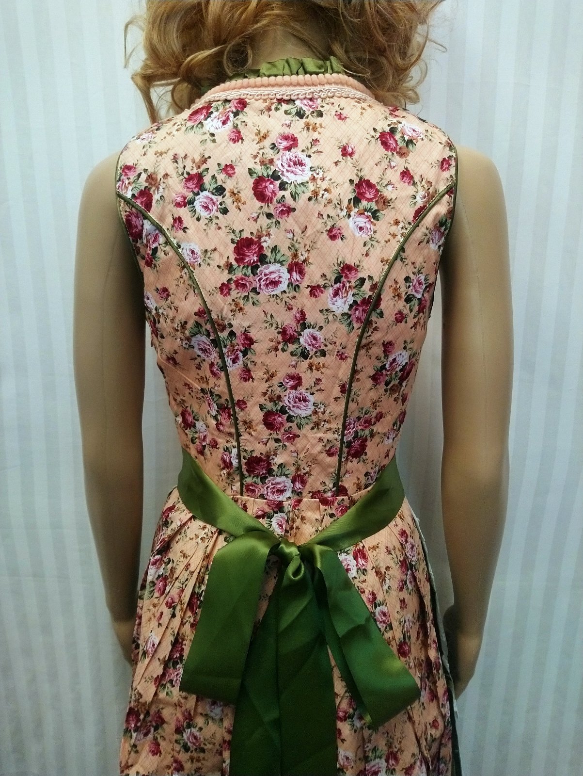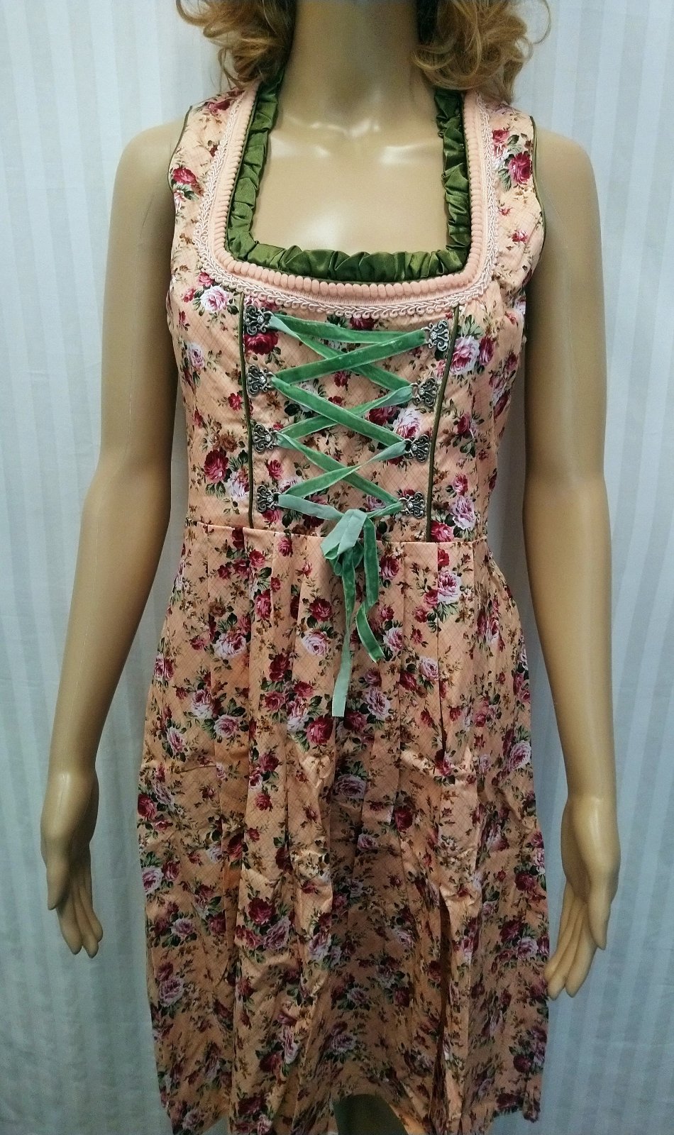 1. luxusný brokátový dirndl bavorský kroj s kvetmi Dirndline, krásne ružové šaty s kvetinovým motívom, zelené lemovanie, zips na boku,