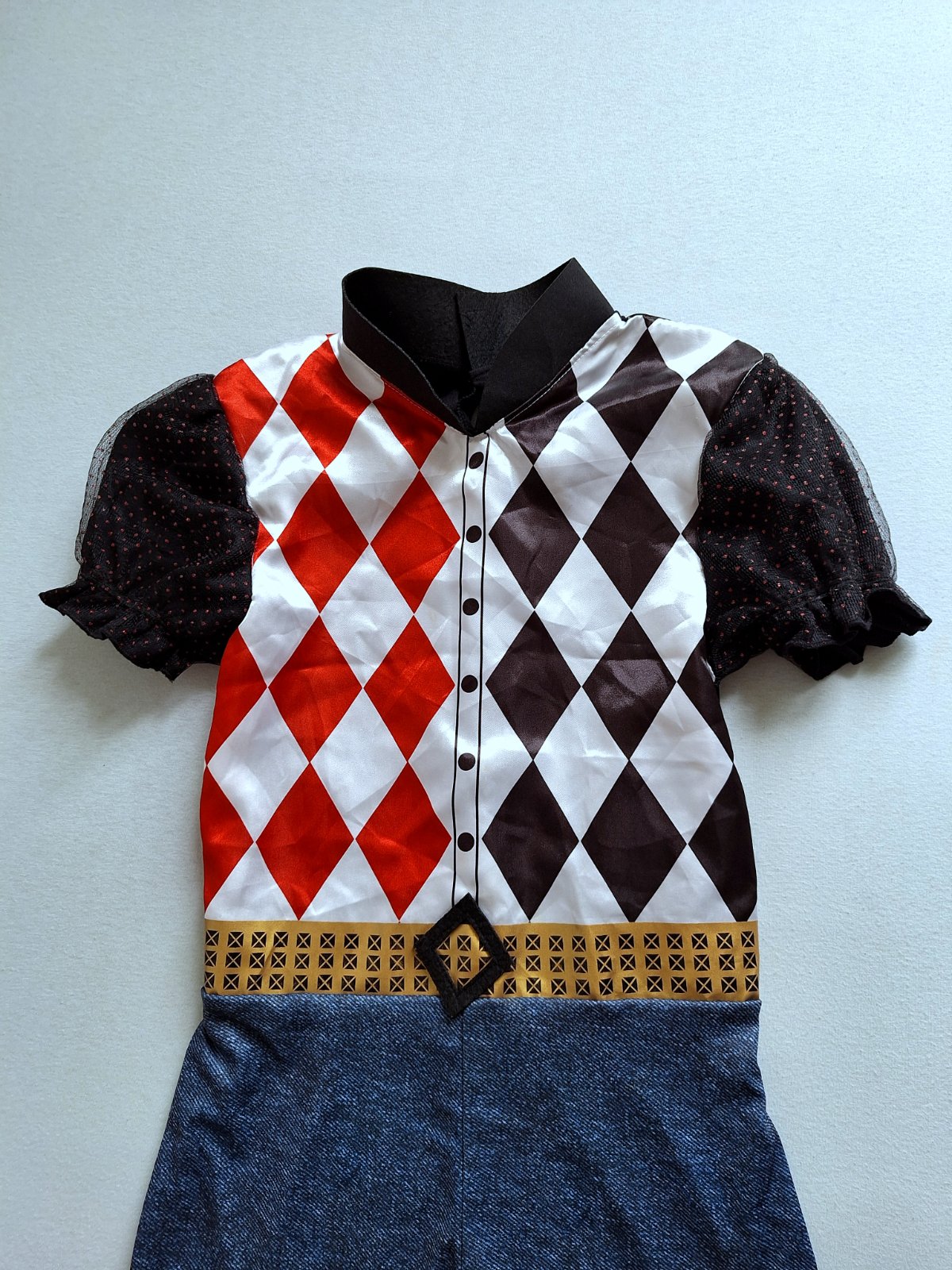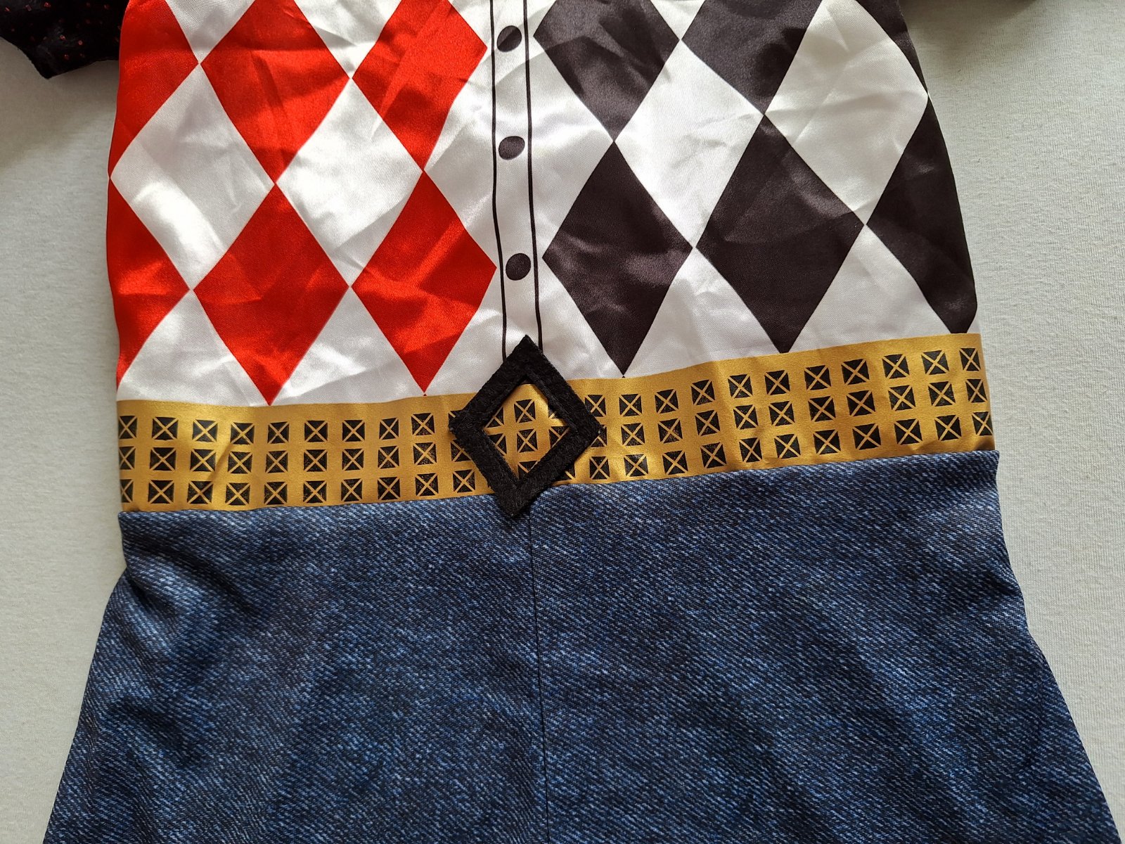 Štýlový kostým Harley Quinn je v TOP stave bez poškodení a známok nosenia. Super elastický, pekne sa prispôsobí na postavu.
