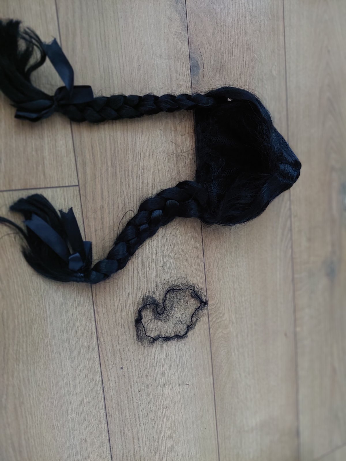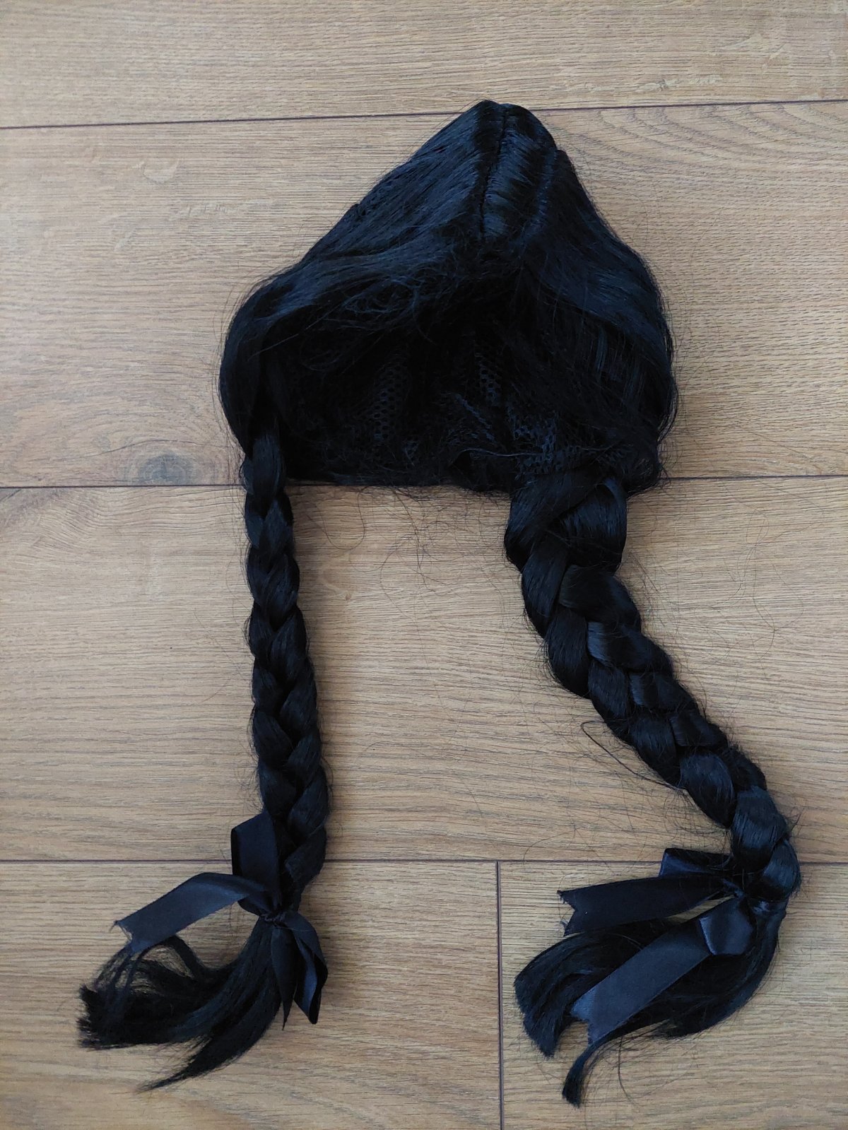 príčesok, pripevnenie "hrebenčeky". dĺžka cca 35 cm, vlasy čiernej farby sú len podklad nie sú súčasťou ponúkaného príčesku. Stav: dobrý, málo nosený. Kód produktu: 30204073