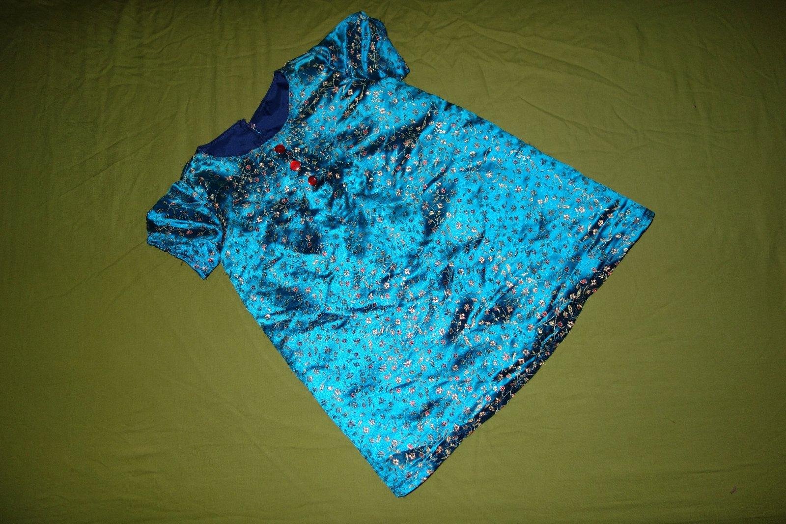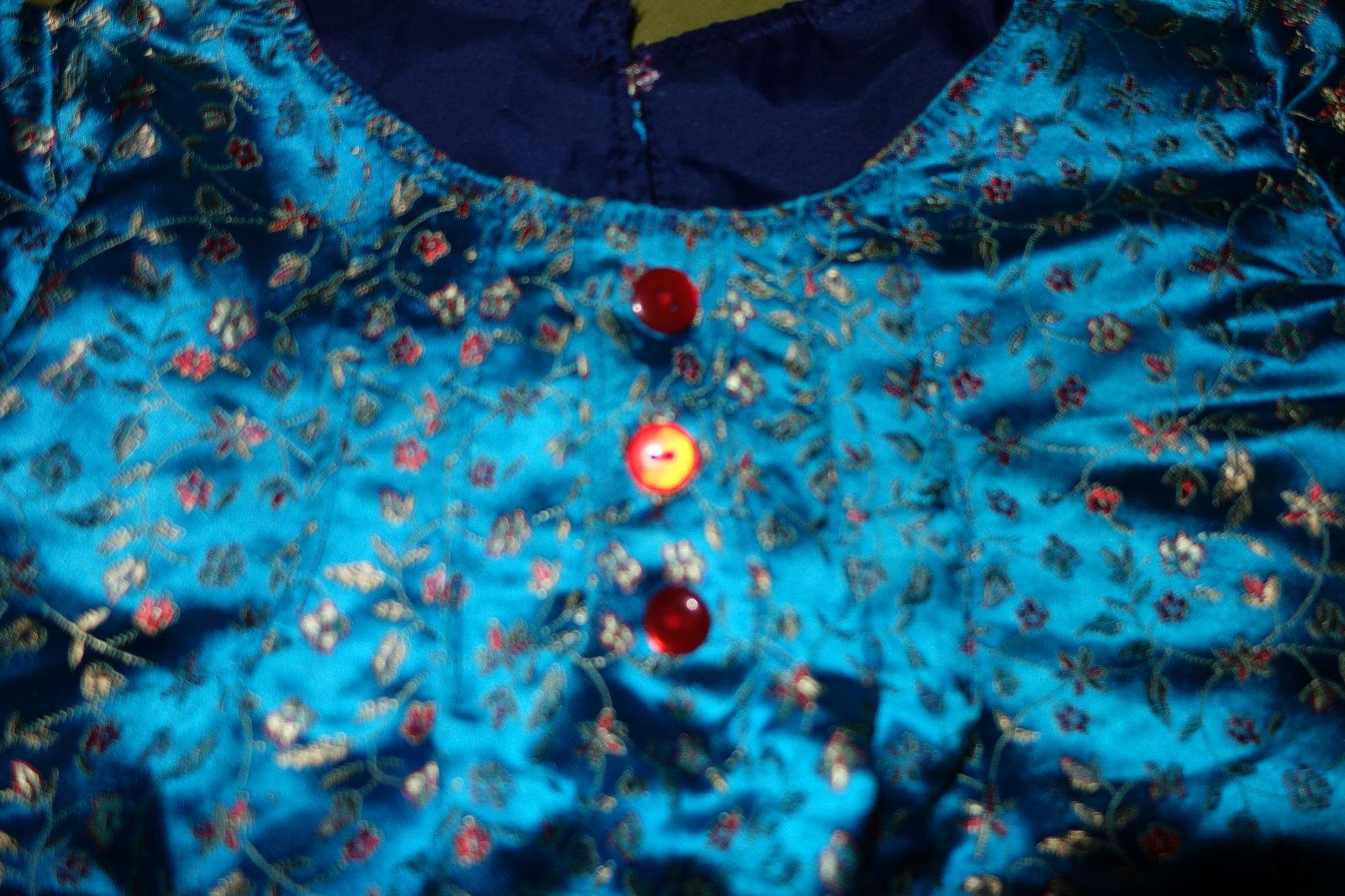 Pekna tunicka pre turecku tanecnicu vo velmi dobrom stave (vzdu chyba jedno putko na gombika a jedno je trochu poskodene, ale nevadi to, stale to dobre drzi). Je pekna, tyrkysova, viac do modra oproti fotke. Vek nie je uvedeny, ale podla mna tak na 7/8 rokov.