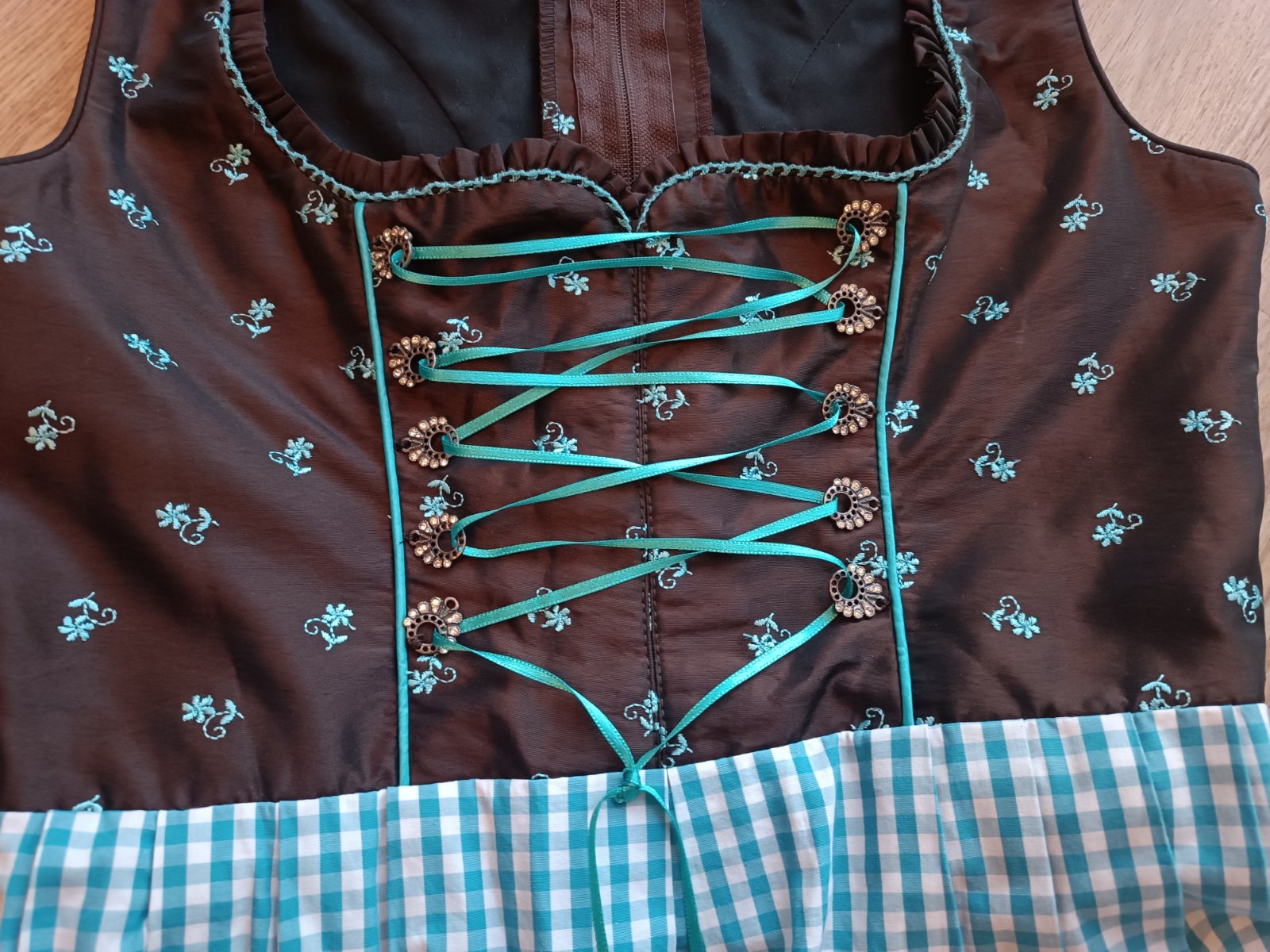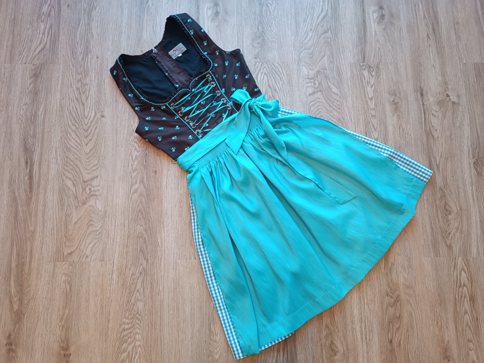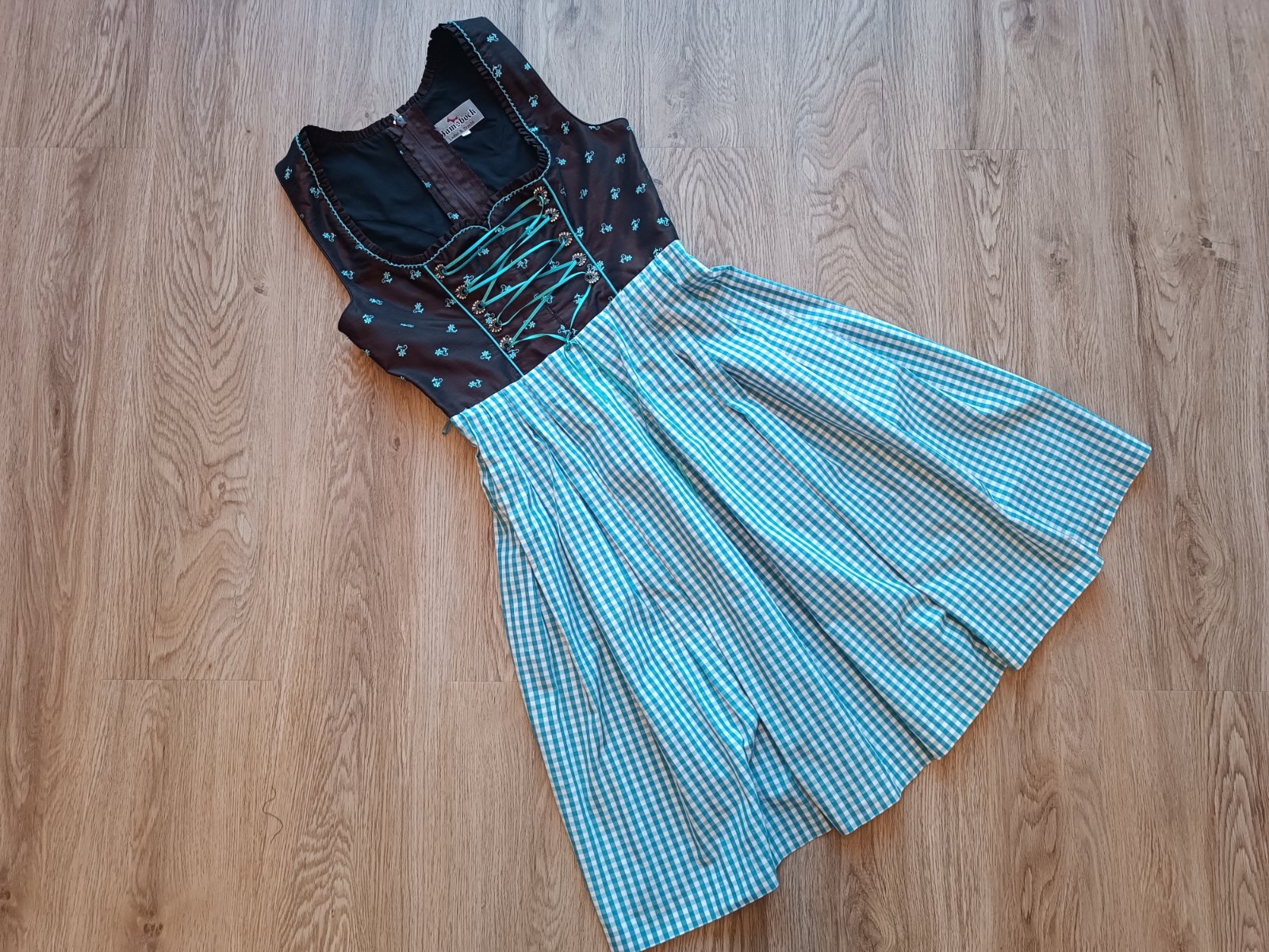 Predám tento bavorský kroj DIRNDL, veľkosť uvedená 36, no veľkostne sadne skôr na 34, príp. 34/36, veľmi dobrý stav, akurát som našla dve mini škvrnky na zásterke, takmer ich vôbec nevidno.