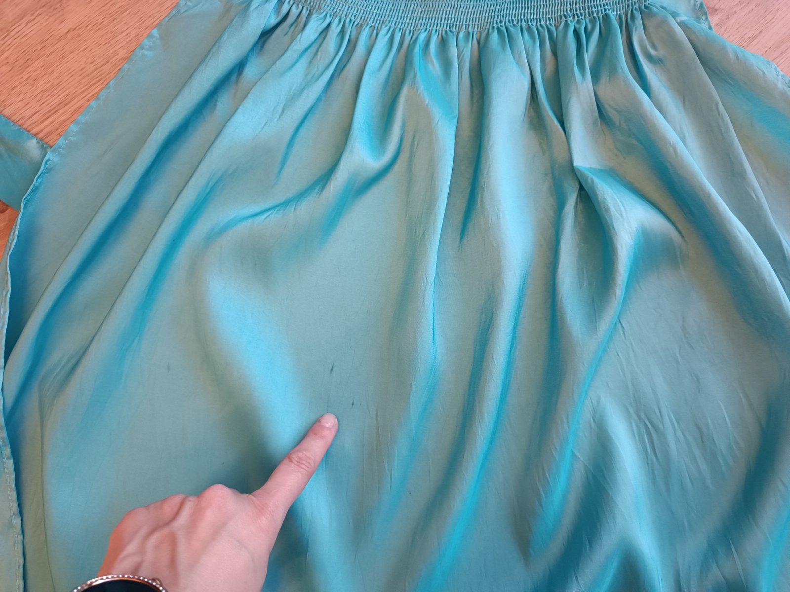 Celková dĺžka: 98 cm, šírka cez pazuchy: 44 cm, pás: 34,5 cm.