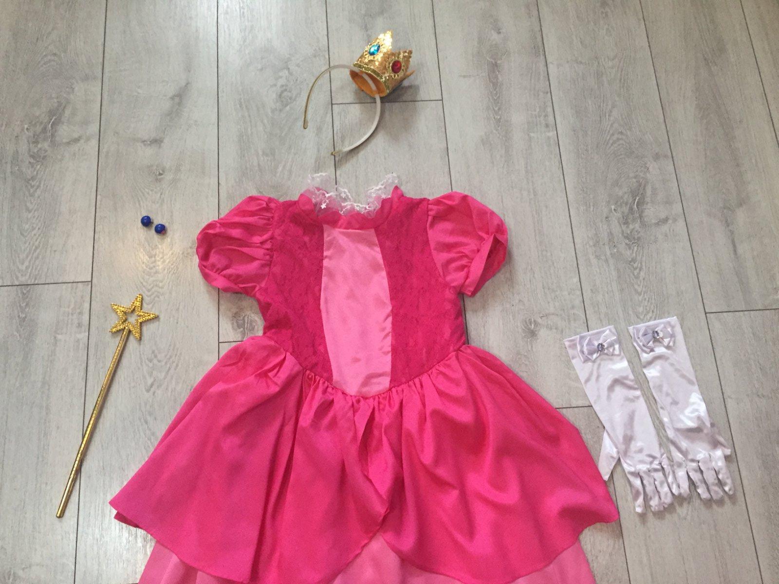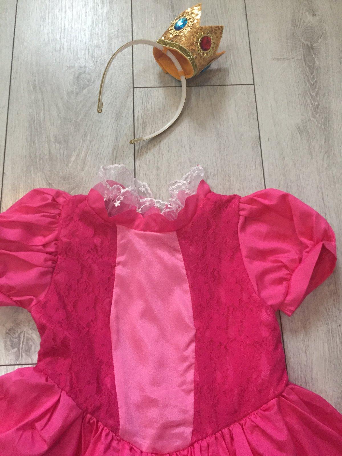 Saty su v dobrom stave. Velkosť 140. Dlžka 98cm, širka cez pazuchy 34cm, širka v pase 32cm. Rukavice 28cm, palička 33cm. Plus čelenka a naušnice.