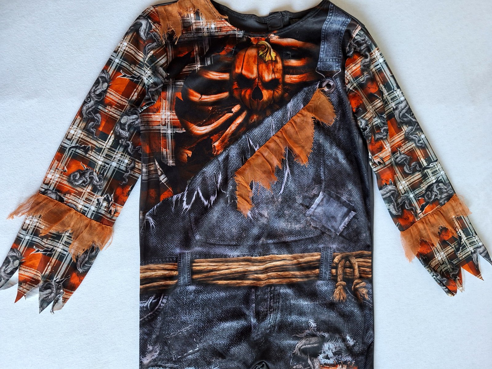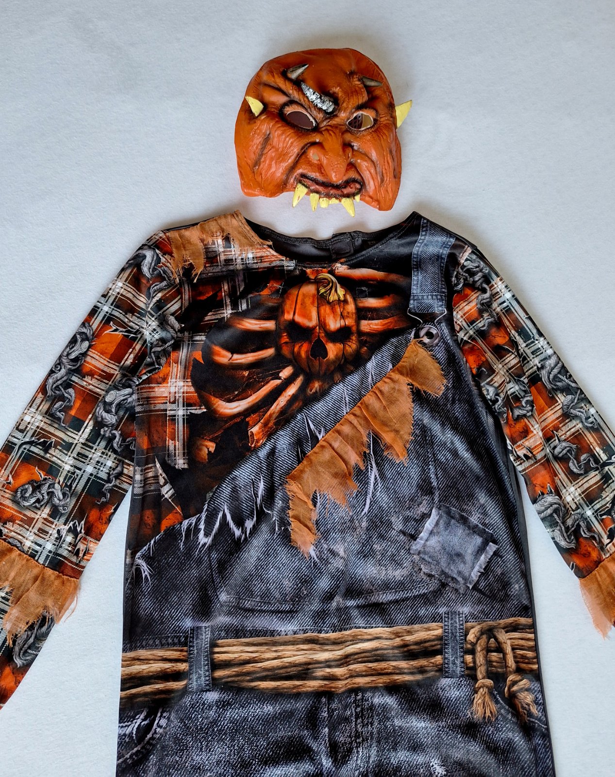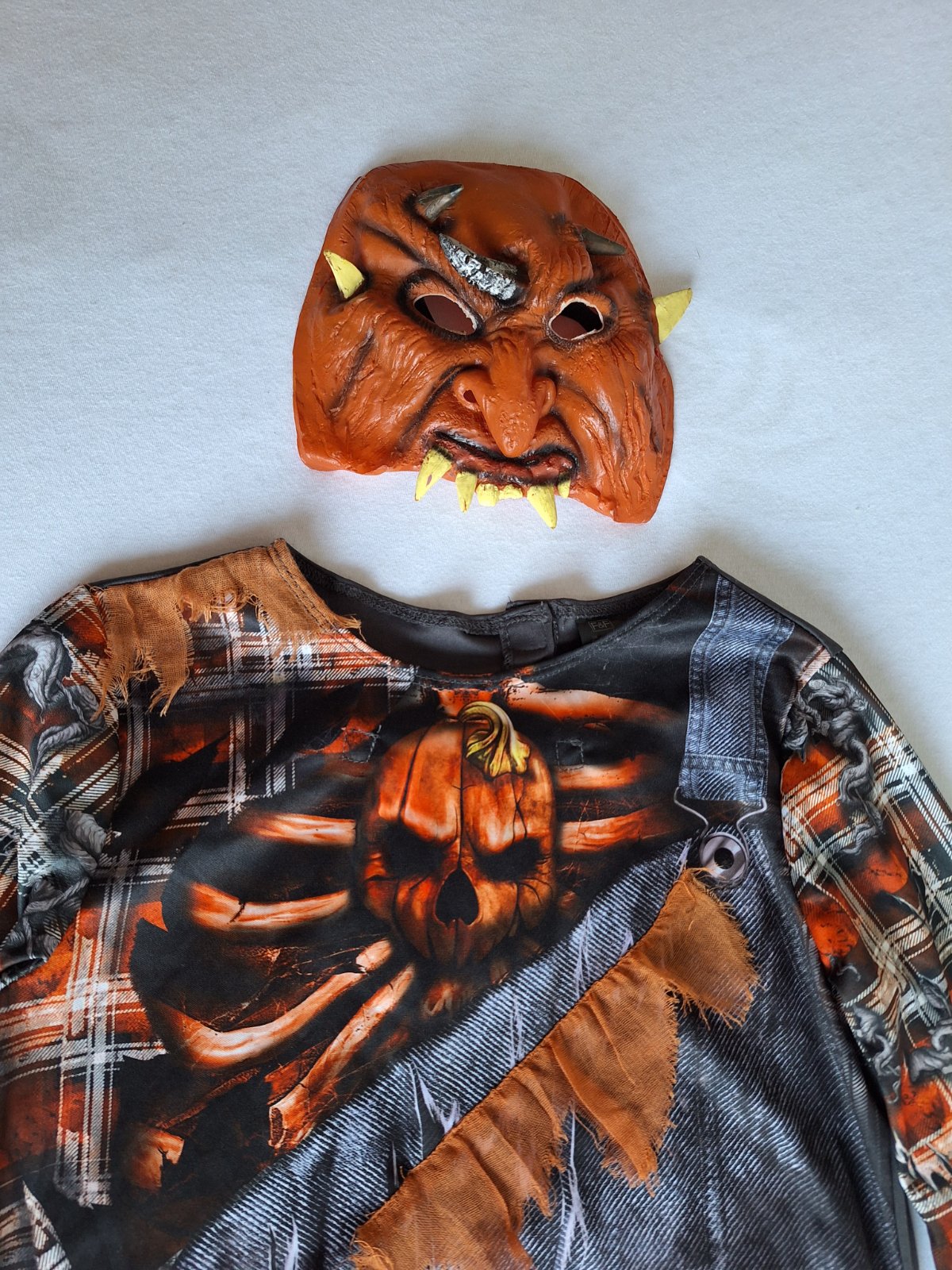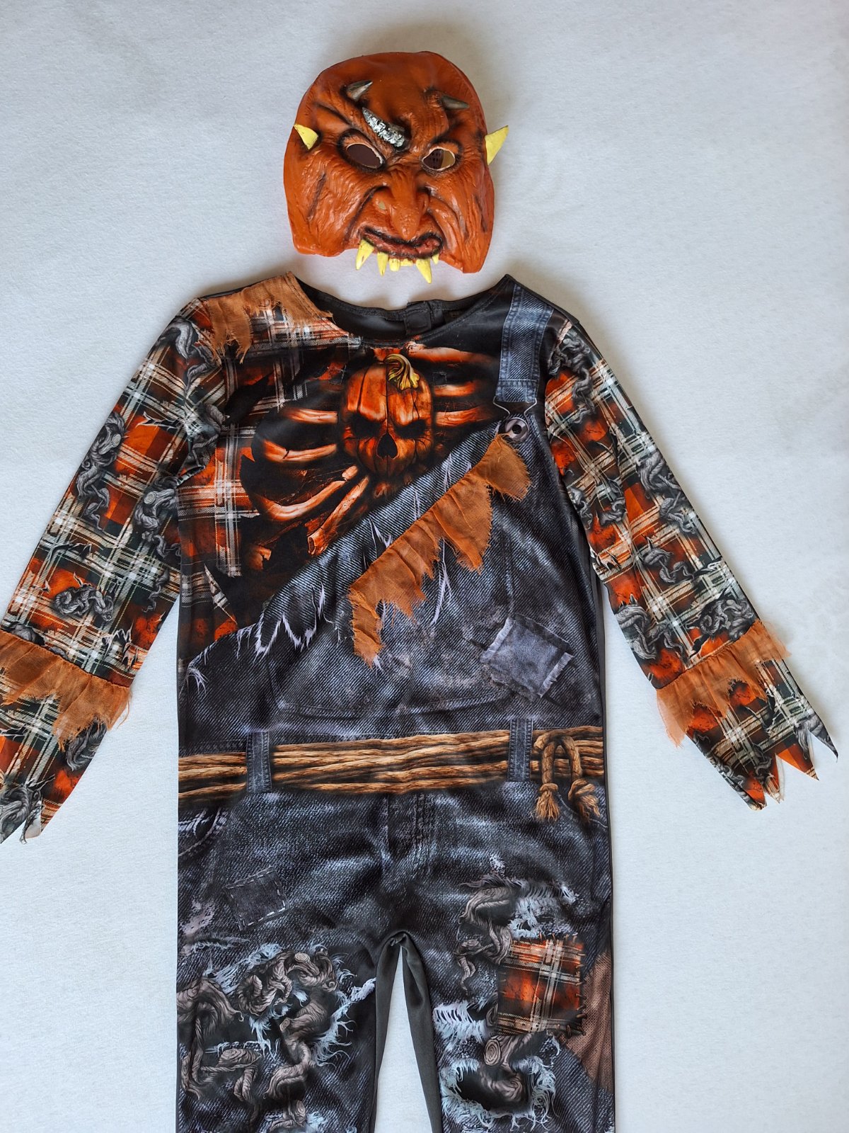 Kostým je v top stave, bez poškodení. Pozostáva z overalu a masky na tvár. Môžeme ho nosiť ako zombie aj ako čerta. Maska je univerzálna a ideálna na halloween.