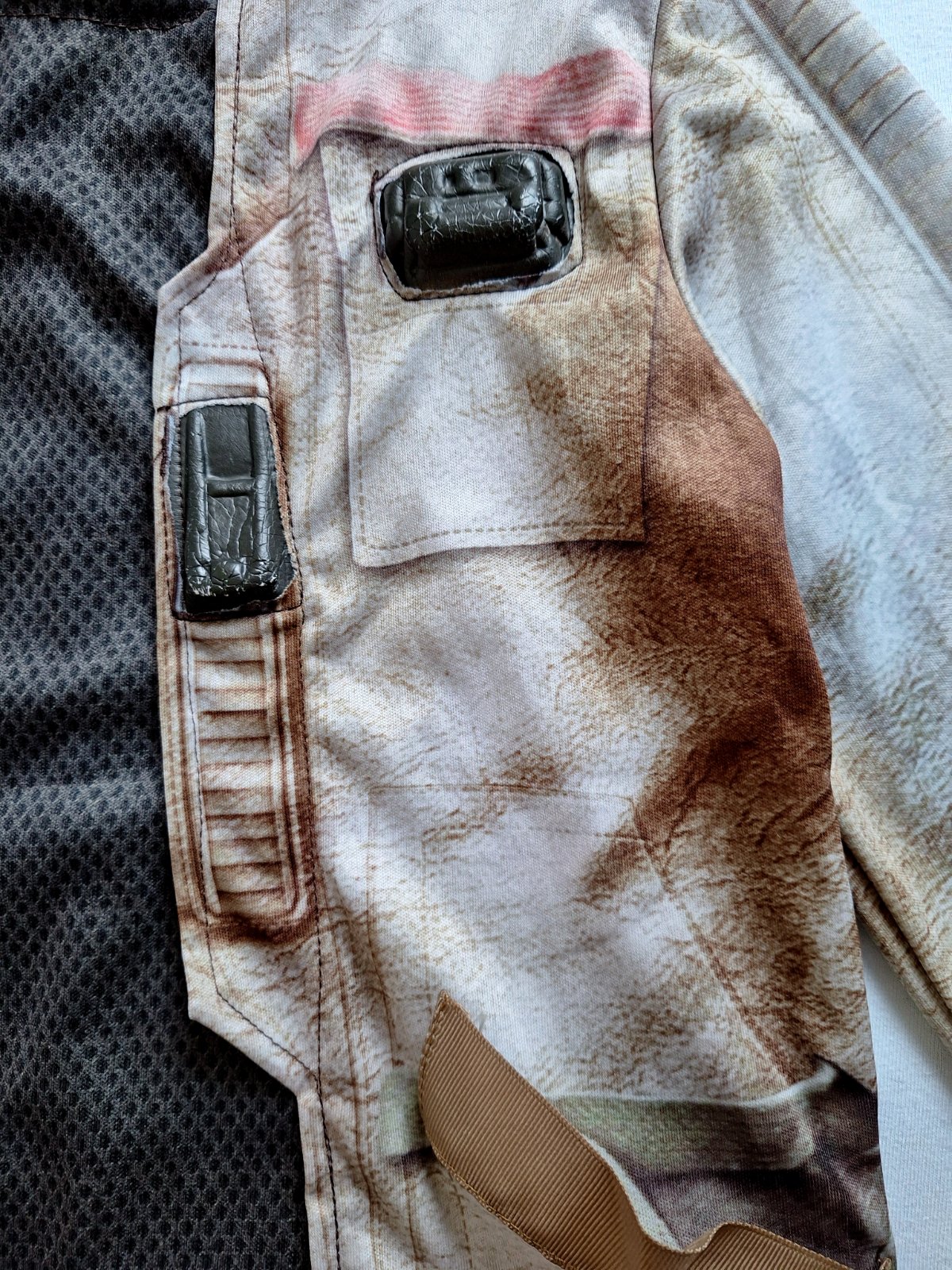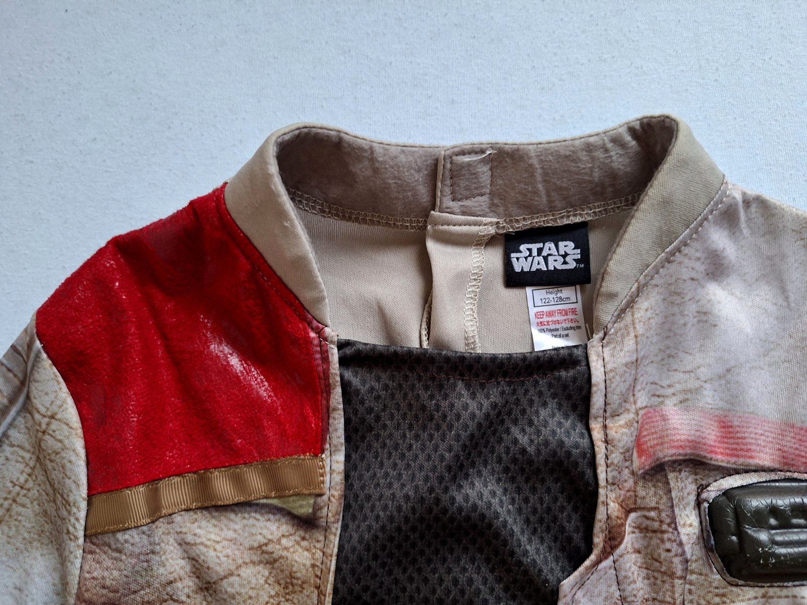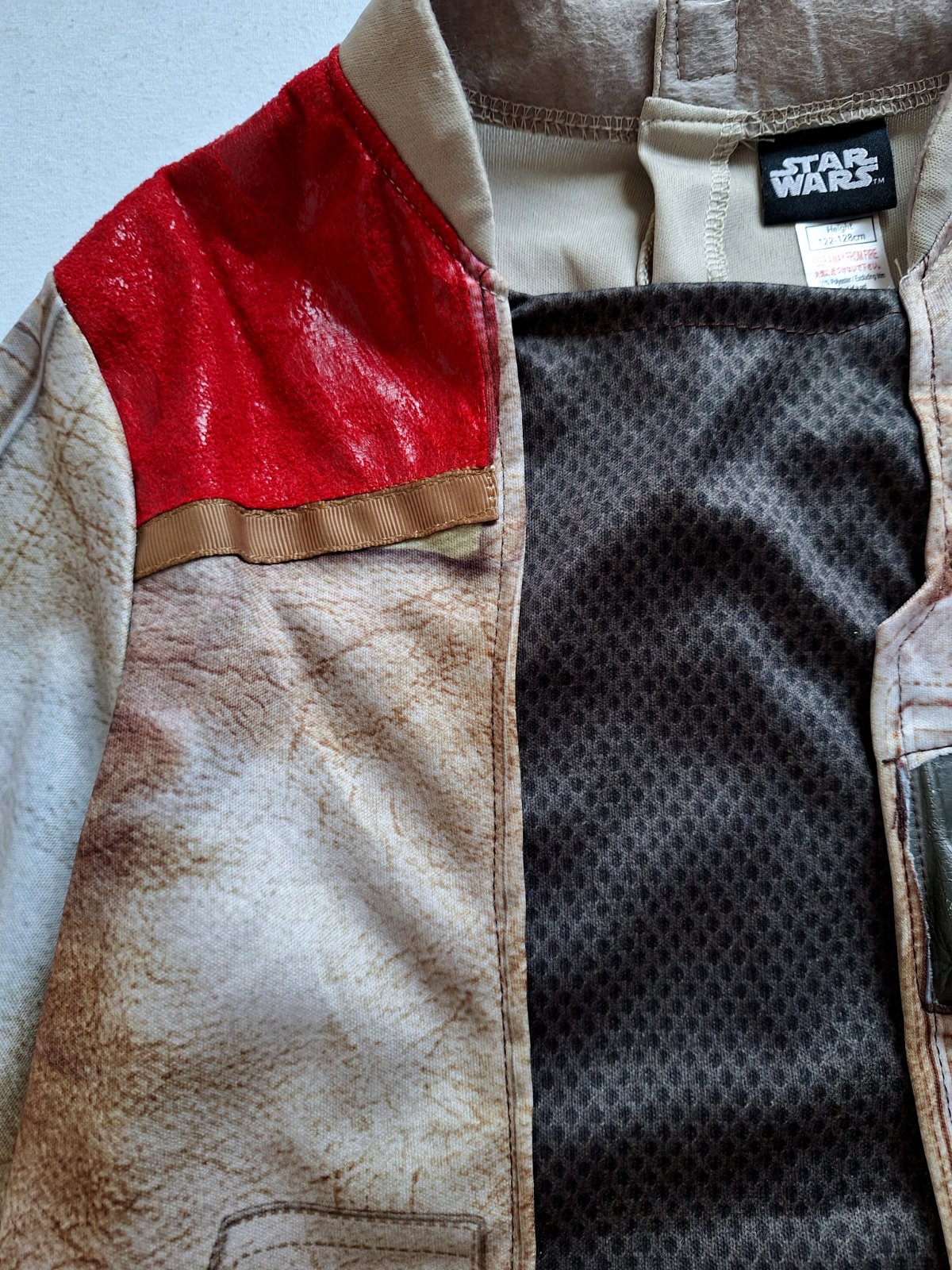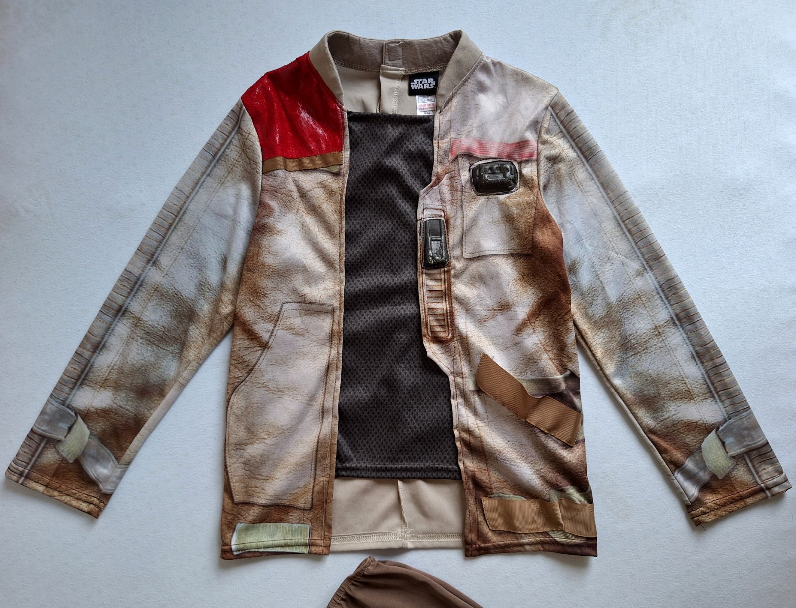 Kostým Finna z Hviezdnych vojen je v top stave, bez poškodení a známok nosenia, veľmi pekný, Pozostáva z kabátika a nohavíc v páse do gumy. Pekne elastický, prispôsobí sa. Na vrchnom diely rôzne aplikácie z pevnejšieho materiálu.