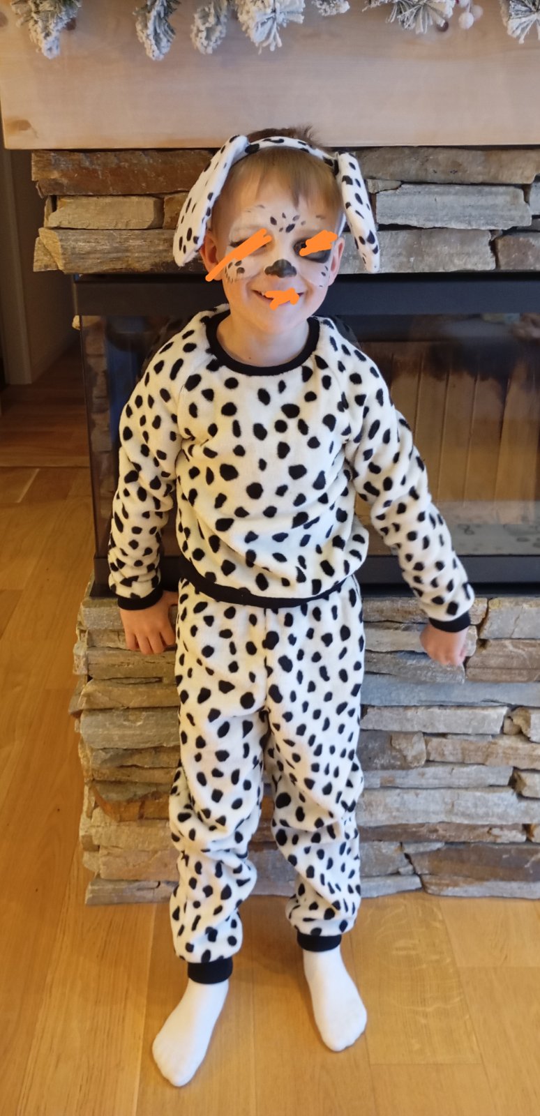 Vzadu pripnuty chvost ( je urobený tak aby sa dal ľahko odobrať a poprípade kostým využiť ako pyžamo)