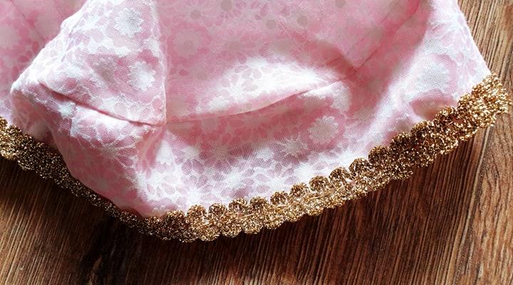 veľmi dobrý stav, bez poškodenia, rúžovej farby, biely kvetinový vzor, zlaté lemovanie, obvod 55cm, 100%bavlna, poštovné 1,55€(doporučene)