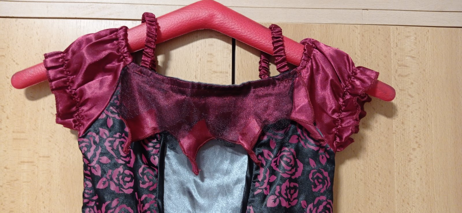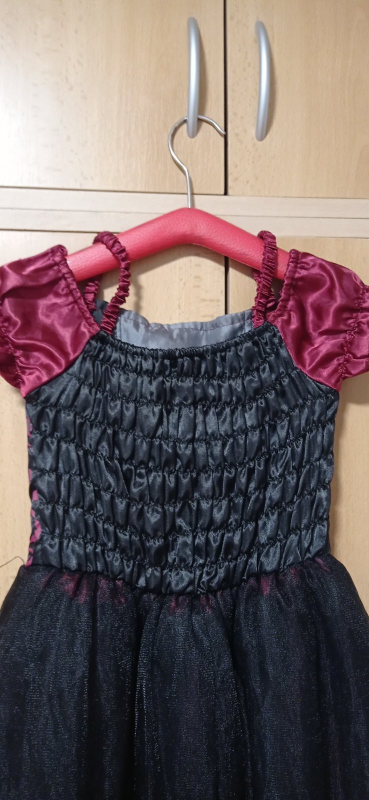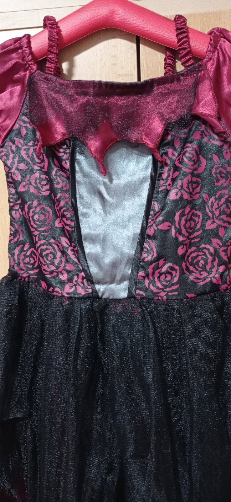 Predám kostým temnej princeznej, upírky alebo čarodejnice, kto ako chce, kostým sme kúpili ale mala ho asi iba raz doma oblečený, cez covid žiadny karneval nebol. Skôr pre štíhle dievča, naša v 7 rokoch už neoblečie vrchná časť je dosť pevná ale vzadu je elastická časť, ktorá trochu povolí. Vrchná tylová sukňa je na viacerých miestach naschvál roztrhaná, bolo to tak už od nova.