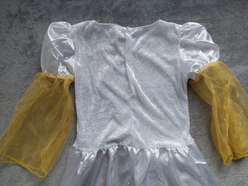 Stav: top stav, v spodnej časti malé popísanie fixkou, inak bez poškodení, ako nové. Veľmi pekné, jednoduché no pritom krásne. Organzové rukávy, zamatový živôtik, v páse guma.