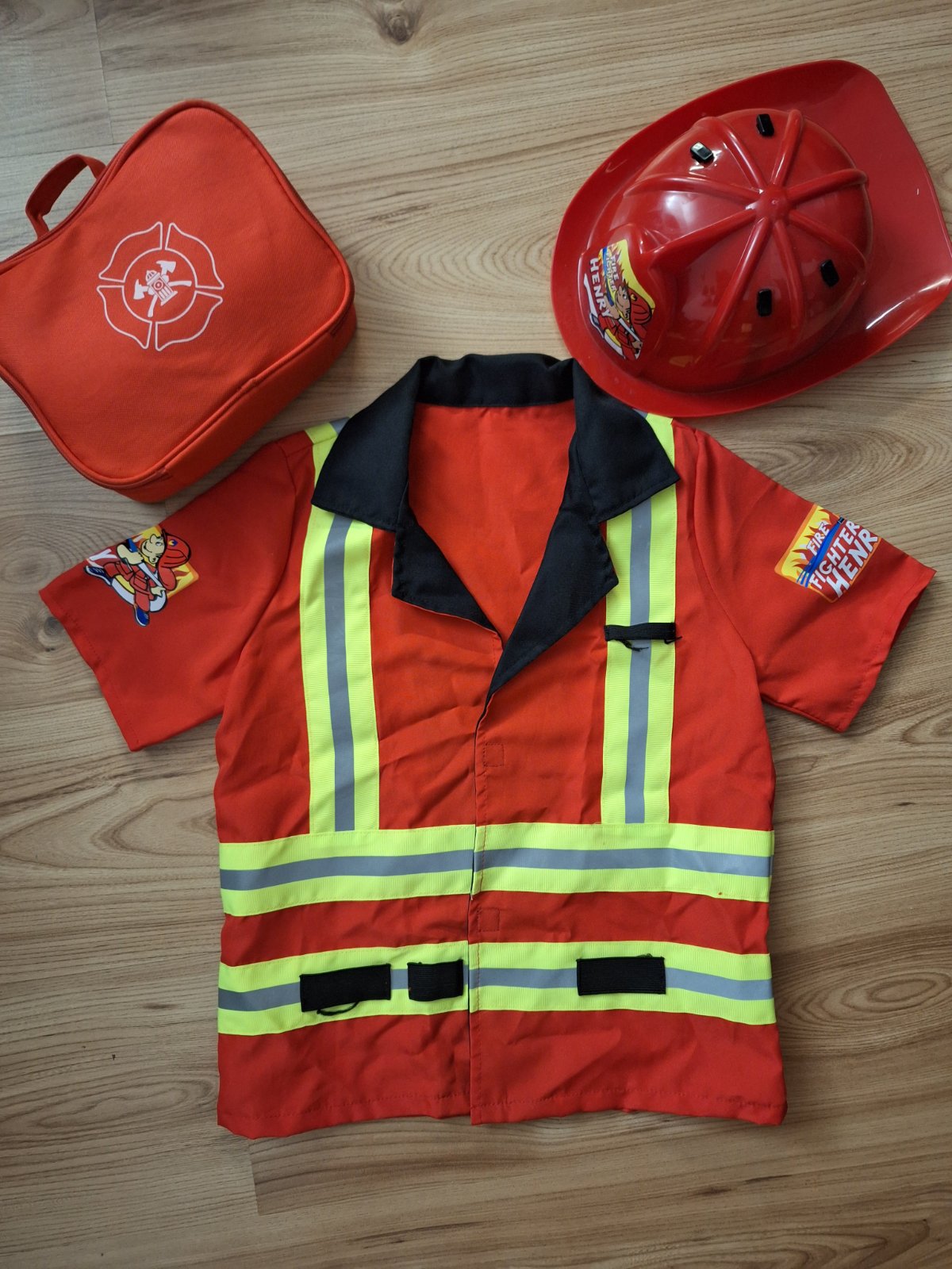 Dokonalý kostým PAT a MAT Montérky veľkosť 104 (2x oblečené), opasok so zastrčeným náradím a doladená helma (gumičkami prispôsobená tak, aby držala na hlavičke).
