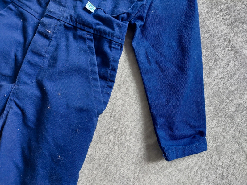 Stav: top stav, na pravom kolienku jemný žmolček, inak bez poškodení - len omošený od uskladnenia. Parádna detská imitácia dospeláckej kombinézy automechanika. V páse guma, vpredu zapínanie na suchý zips.