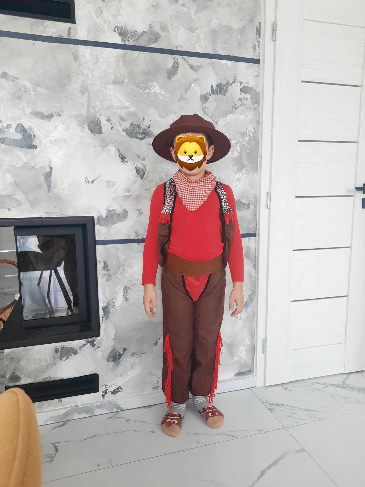 Obsahuje klobúk, šatku, vestu, opasok, nohavice.