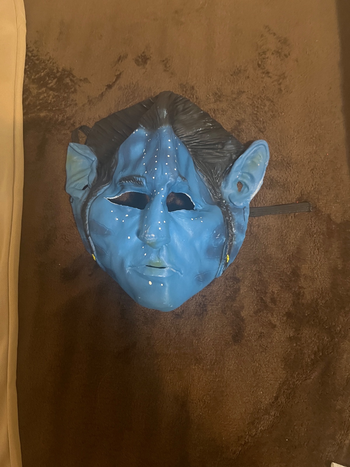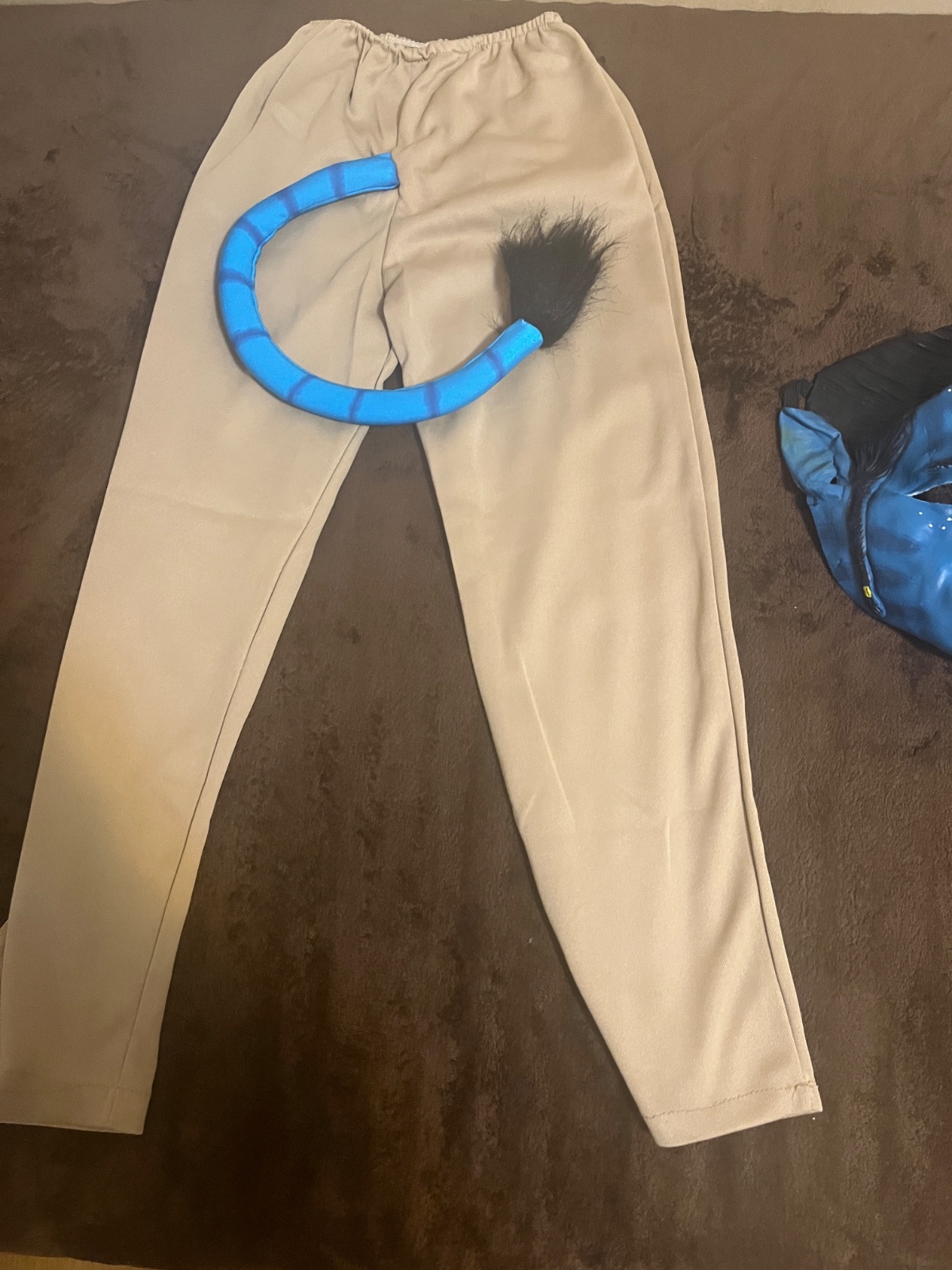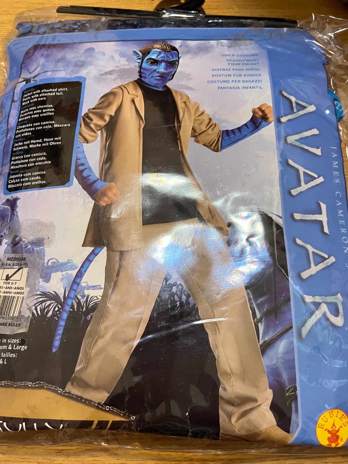 Predam masku Avatar, velkost 7-10 rokov, cena 15 eur. Rozmery vrch: sirka 37cm, dlzka 53cm, nohavice na gumu: pas v klude 23cm, po natiahnuti 42cm, dlzka 77 cm