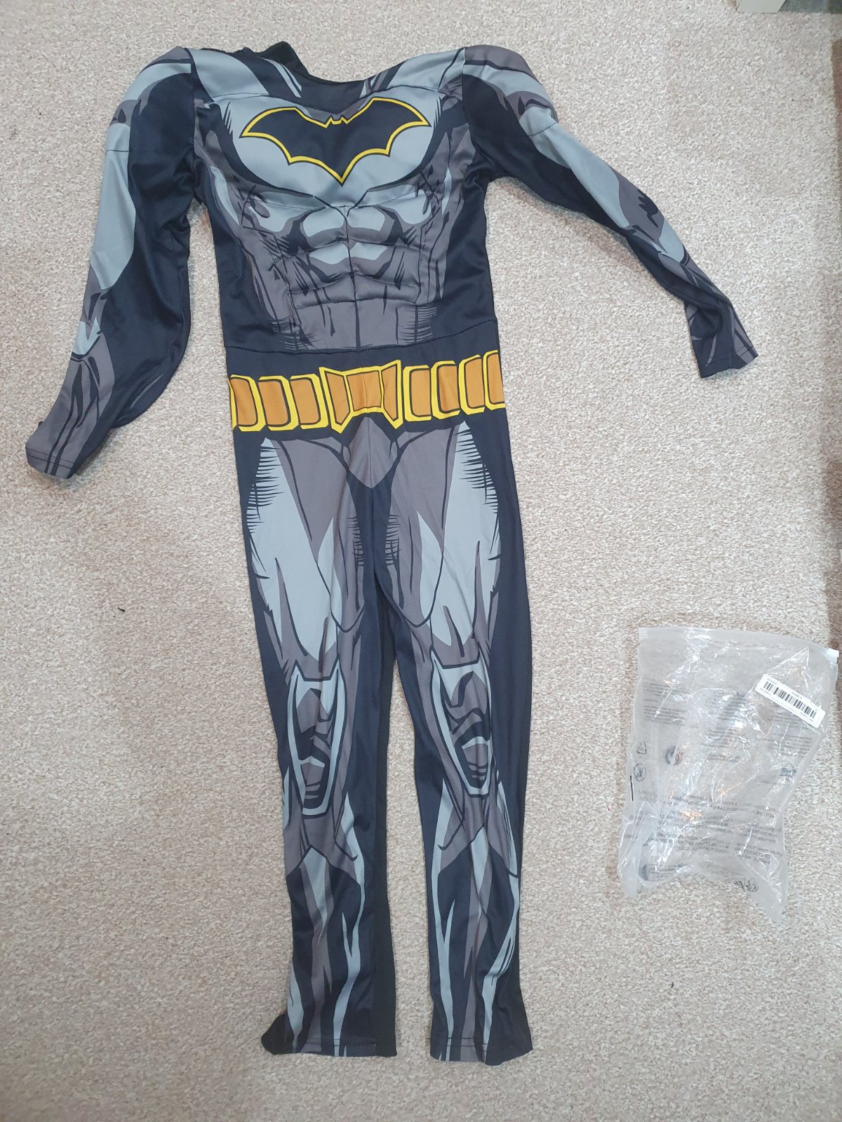 Karnevalový kostým, prípadne kostým na Halloween. Píšu na 8-10 rokov. , ale ja si myslím že skôr je to na 6 rokov. Škraboška je pokrčená, ale dá použiť.